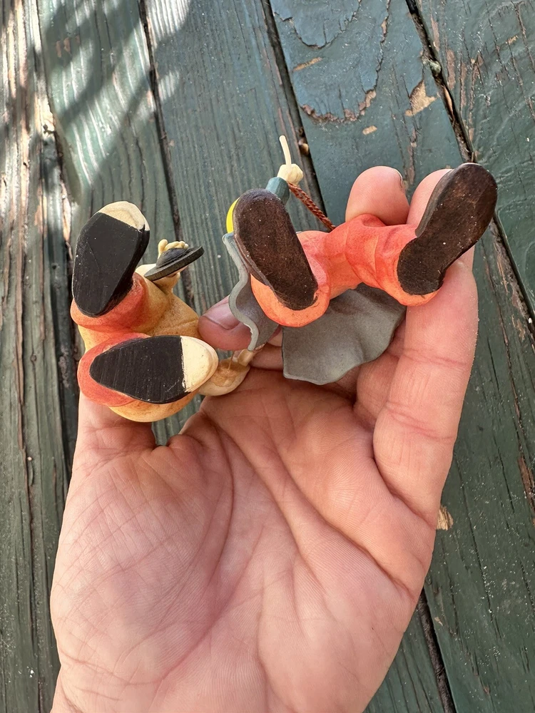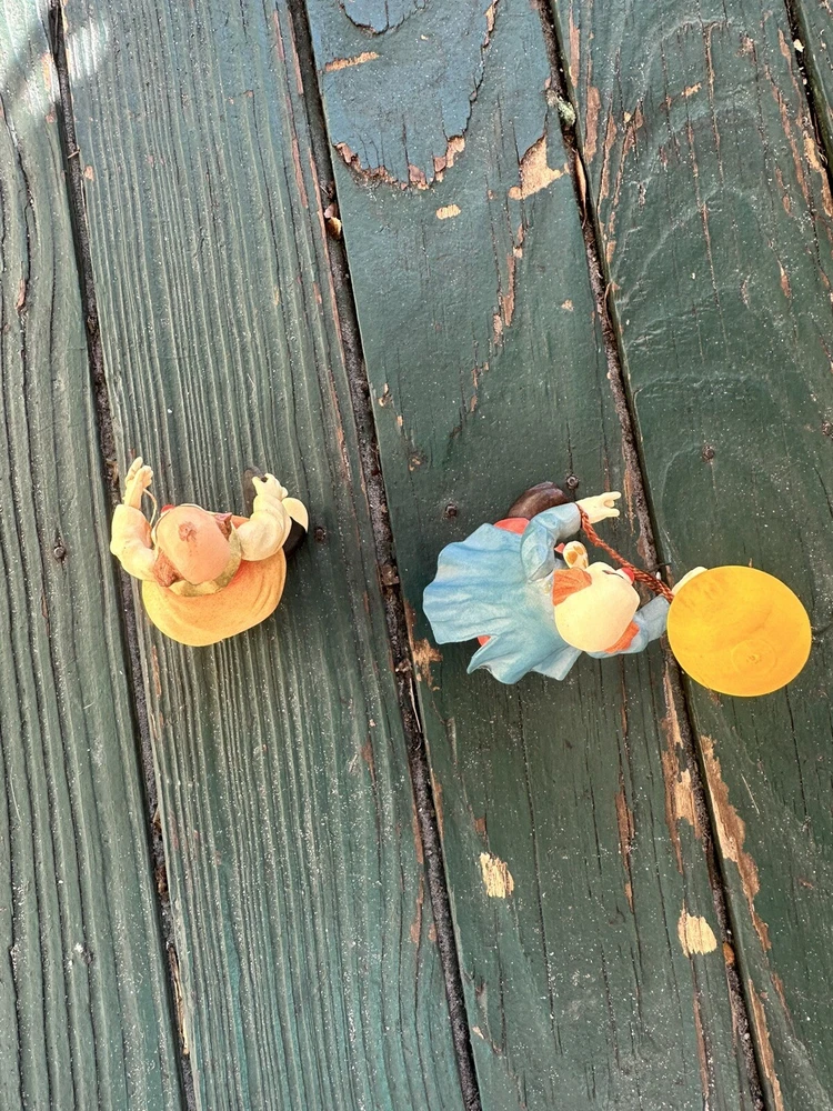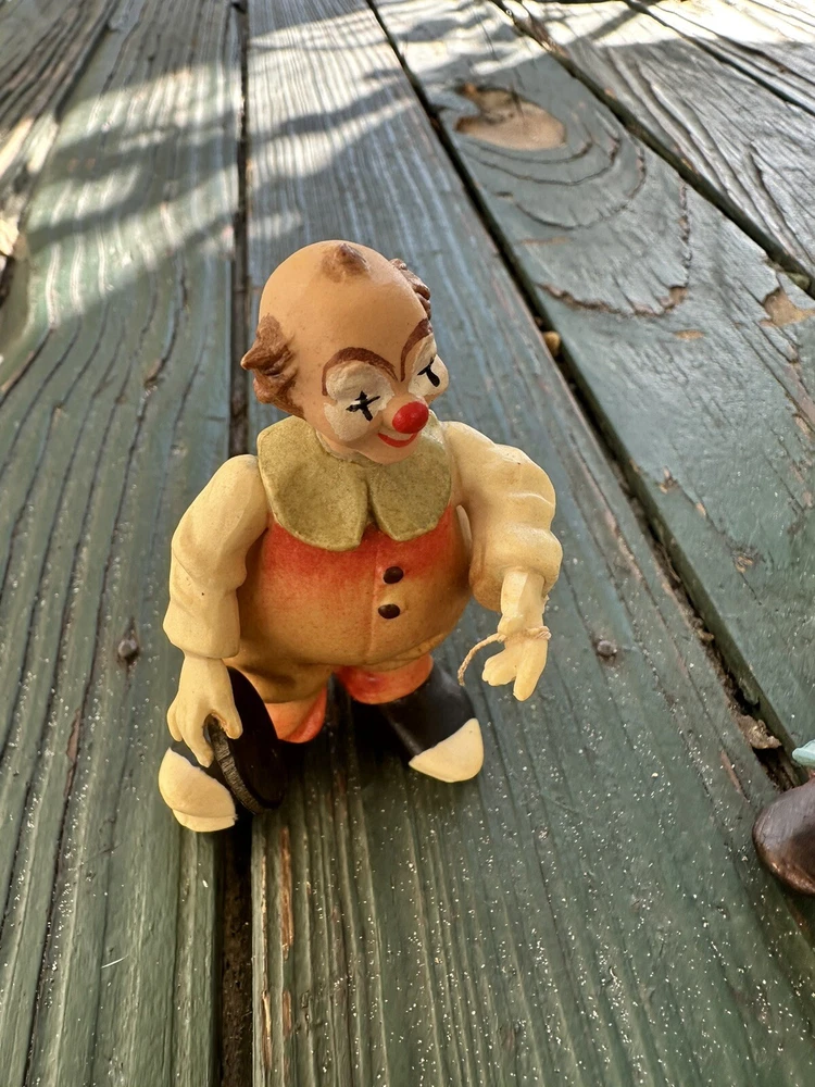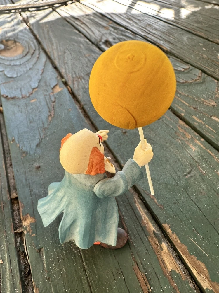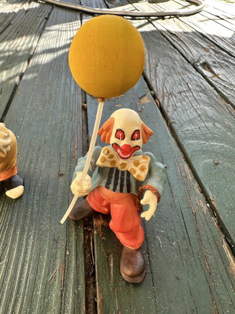 Anri wood handcrafted toriart clown figurine w/yellow Balloon Lot Of Two