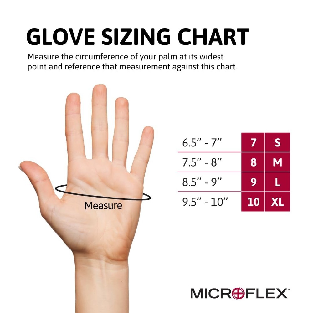 Extended cuff latex gloves are ideal for use in the automotive, automotive aftermarket, life sciences, and more Thick blue gloves feature textured fingertips for excellent grip when handling food, and superb tactile sensitivity for fine equipment handling Durable disposable latex gloves are double chlorinated, making them comfortable and easy to pull on SafeGrip glove comes in size small (6.5-7" palm circumference) Includes 50 Microflex SG-375 ambidextrous gloves