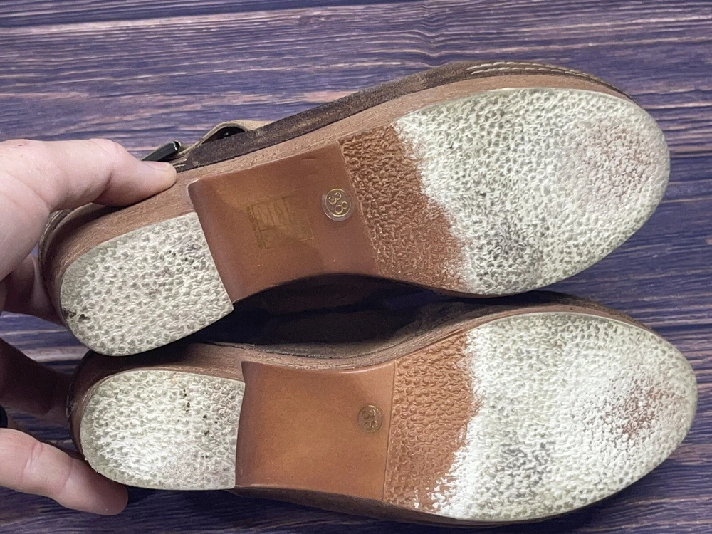Elevate your shoe collection with these stylish Antelope Stelle Platform Slingback Clogs. Perfect for any occasion, these shoes feature a comfortable block heel, a suede upper material, and a leather insole material. The bohemian theme adds a touch of personality to your outfit, making them a great addition to your wardrobe. These shoes come in size 38, which is equivalent to a US shoe size 7. They are suitable for both casual and workwear occasions, making them a versatile choice for any woman. Whether you're looking for a pair of shoes for winter, summer, fall, or spring, these Antelope Stelle Platform Slingback Clogs are a great choice.