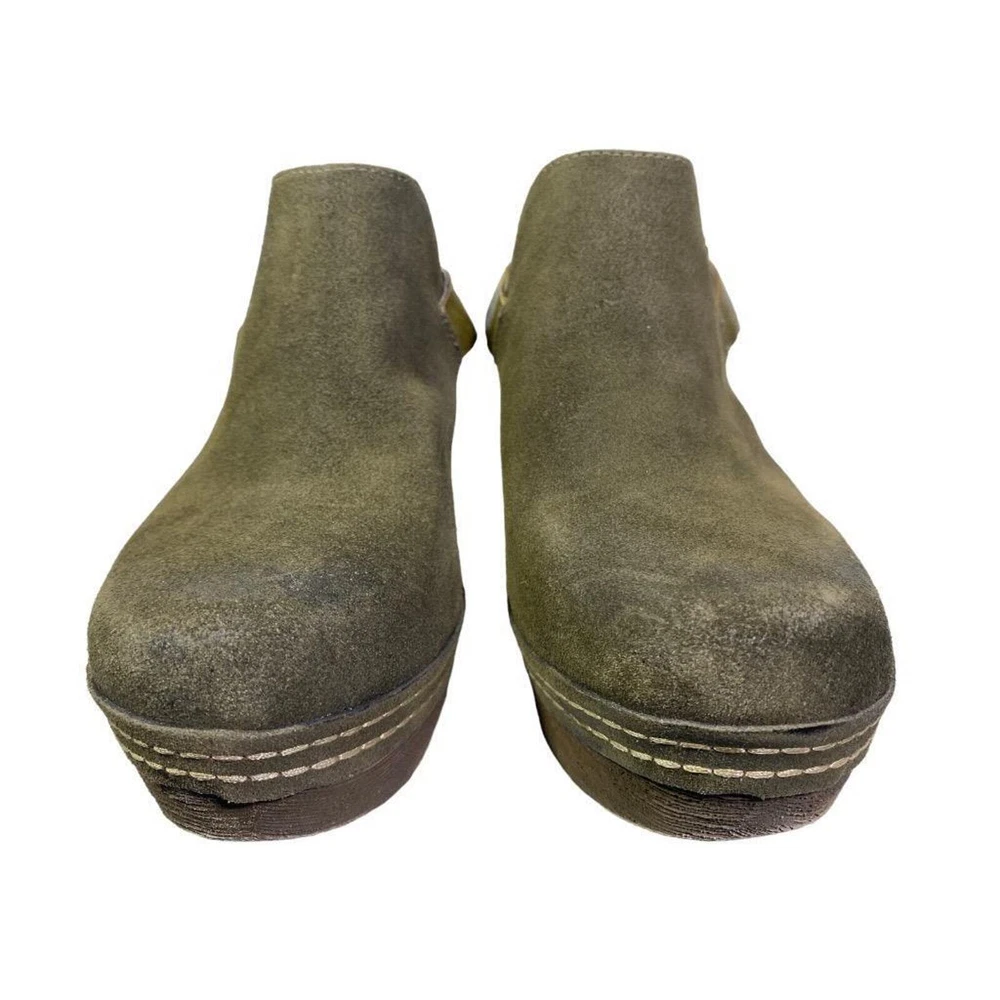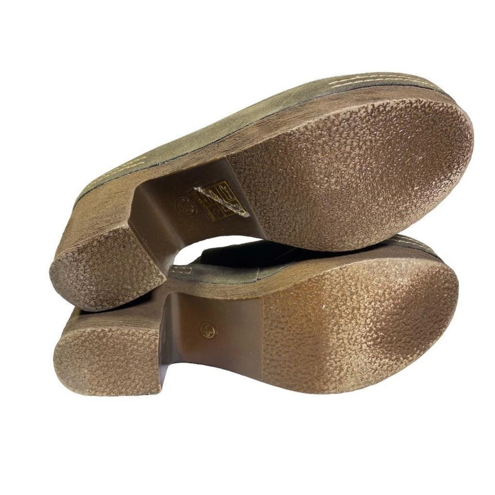 Heel Style: Block Heel Height: Mid (2-2.9 in) Occasion: Casual, Workwear Brand: Antelope EU Shoe Size: 38 Theme: Bohemian Shoe Width: Standard US Shoe Size: 7 Upper Material: Suede Department: Women Style: Clog Color: Dark Green Season: Fall, Spring, Summer, Winter Type: Heel Insole Material: Leather