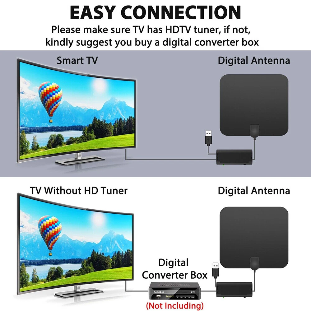 Newe st 4K Digital TV Antenna 3600 Miles Booster DVB-T Aerial HD Flat Indoor Active 37DBi High Gain VHF UHF TV Box TV Antenna Newest 4k 1080p HDTV Indoor Digital Amplified 3600Mile Signal Booster Specificati on : Flat antenna: 250X223mm Signal support: support 720p, 1080i, 1080p HD mode Product range: 3600 miles Coaxial cable: 16.5ft Connector type:F male to TV v.s.w.r. : < = 1.5 Maximum value: 1 Impedance : 75 Ω Capability: Multi-directional capability Applicable channels: All channels can be received Product gain: 37 DBI (with amplifier) Operating frequency: 174~240mhz, 470~862mhz Product size: 25*22.3 * 0.6cm Product Tape: Double-sided tape Antenna cover color: black Operating temperature: -45~85℃ Storage temperature: -45~85℃ Feat ure : 1. This unique plastic shell is imported throughout the network of silver fluffy, and all accessories are pure copper to ensure loose contact 2. We bundled the Velcro and two bubble machines to solve the problem of 3M stickers difficult to solve 3. Connect high quality coaxial cable, easy to locate the antenna, find the best TV signal reception 4. New generation flat design indoor TV antenna, thickness is only 0.6 inches 5. Specially compatible with various digital terrestrial (DVB-T, ISDB-T, DMB-T/H, ATSC) and DAB/FM radios for HDTV 6. Two signal modes, short range (0-300 miles) and long range (300-600 miles), choose the appropriate mode to find more channels Pac kage Includes: 1 × Antenna 1 × Signal Amplifier 1 × F To LEC Converter 1 × Instruction Manual