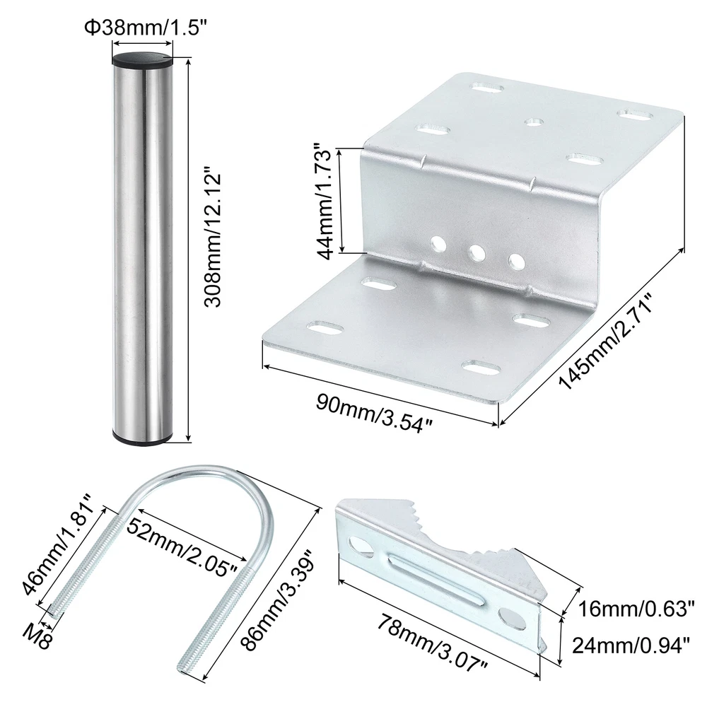 Document Description:1. Material: The antenna u-bolt mounting hardware is made of sturdy aluminum alloy. The galvanized surface treatment provides good corrosion resistance, protecting the brackets from rust and extending their lifespan.2. Design: The antenna pole bracket kit features a versatile U-shaped design that allows for secure attachment of antennas to poles or structures. The brackets are precisely engineered with pre-drilled holes and a U-bolt that ensures a tight and stable fit, providing optimal support and stability for the antenna installation.3. Applications: The antenna pole mount bracket is specifically designed for mounting antennas on poles or structures. It is widely used in telecommunications, broadcasting, and communication systems. The brackets provide a reliable and sturdy solution for securely attaching antennas, ensuring optimal signal reception and transmission.Specification:Material: Aluminum AlloyFinish: Zinc PlatedInner Width: 52mm / 2.05"Total Height: 86mm / 3.39"Thread Size: M8 x 46mm / M8 x 1.81"(D*L)Bracket Size: 78 x 24 x 16mm / 3.07" x 0.94" x 0.63"(L*W*H)Z-bracket Size: 145 x 90 x 44mm / 2.71" x 3.54" x 1.73"(L*W*H)Tube Size: 38 x 308mm / 1.5" x 12.12"(D*L)Package Content: 2pcs x U-bolt, 2pcs x U-bolt Bracket, 1pcs x Z-Bracket 4pcs x Flat Washers, 4pcs x Lock Washers, 4pcs x Nuts, 4pcs x Expansion Tubes, 4pcs x Screws, 1pcs x Wrench, 1pcs x Tube Antenna Pole Mounting Kit-Z-Bracket with Double U-bolt Clamp and 308mm Tube Description: 1. Material: The antenna u-bolt mounting hardware is made of sturdy aluminum alloy. The galvanized surface treatment provides good corrosion resistance, protecting the brackets from rust and extending their lifespan. 2. Design: The antenna pole bracket kit features a versatile U-shaped design that allows for secure attachment of antennas to poles or structures. The brackets are precisely engineered with pre-drilled holes and a U-bolt that ensures a tight and stable fit, providing optimal support and stability for the antenna installation. 3. Applications: The antenna pole mount bracket is specifically designed for mounting antennas on poles or structures. It is widely used in telecommunications, broadcasting, and communication systems. The brackets provide a reliable and sturdy solution for securely attaching antennas, ensuring optimal signal reception and transmission. Specification: Material: Aluminum Alloy Finish: Zinc Plated Inner Width: 52mm / 2.05" Total Height: 86mm / 3.39" Thread Size: M8 x 46mm / M8 x 1.81"(D*L) Bracket Size: 78 x 24 x 16mm / 3.07" x 0.94" x 0.63"(L*W*H) Z-bracket Size: 145 x 90 x 44mm / 2.71" x 3.54" x 1.73"(L*W*H) Tube Size: 38 x 308mm / 1.5" x 12.12"(D*L) Package Content: 2pcs x U-bolt, 2pcs x U-bolt Bracket, 1pcs x Z-Bracket 4pcs x Flat Washers, 4pcs x Lock Washers, 4pcs x Nuts, 4pcs x Expansion Tubes, 4pcs x Screws, 1pcs x Wrench, 1pcs x Tube Hot Item Payment 1.We accept eBay payment . 2.Payment must be received within 7 business days of auction closing. Shipping 1.We ship to your eBay or Paypal address. Please make sure your eBay and Paypal address is correct before you pay. 2.Items will be shipped within 1-3 business day when we received payment. 3.Delivery time depends on destination and other factors. Description Policy Antenna Pole Mounting Kit-Z-Bracket with Double U-bolt Clamp and 308mm Tube Description: 1. Material: The antenna u-bolt mounting hardware is made of sturdy aluminum alloy. The galvanized surface treatment provides good corrosion resistance, protecting the brackets from rust and extending their lifespan. 2. Design: The antenna pole bracket kit features a versatile U-shaped design that allows for secure attachment of antennas to poles or structures. The brackets are precisely engineered with pre-drilled holes and a U-bolt that ensures a tight and stable fit, providing optimal support and stability for the antenna installation. 3. Applications: The antenna pole mount bracket is specifically designed for mounting antennas on poles or structures. It is widely used in telecommunications, broadcasting, and communication systems. The brackets provide a reliable and sturdy solution for securely attaching antennas, ensuring optimal signal reception and transmission. Specification: Material: Aluminum Alloy Finish: Zinc Plated Inner Width: 52mm / 2.05" Total Height: 86mm / 3.39" Thread Size: M8 x 46mm / M8 x 1.81"(D*L) Bracket Size: 78 x 24 x 16mm / 3.07" x 0.94" x 0.63"(L*W*H) Z-bracket Size: 145 x 90 x 44mm / 2.71" x 3.54" x 1.73"(L*W*H) Tube Size: 38 x 308mm / 1.5" x 12.12"(D*L) Package Content: 2pcs x U-bolt, 2pcs x U-bolt Bracket, 1pcs x Z-Bracket 4pcs x Flat Washers, 4pcs x Lock Washers, 4pcs x Nuts, 4pcs x Expansion Tubes, 4pcs x Screws, 1pcs x Wrench, 1pcs x Tube Hot Item Payment 1.We accept eBay payment . 2.Payment must be received within 7 business days of auction closing. Shipping 1.We ship to your eBay or Paypal address. Please make sure your eBay and Paypal address is correct before you pay. 2.Items will be shipped within 1-3 business day when we received payment. 3.Delivery time depends on destination and other factors.