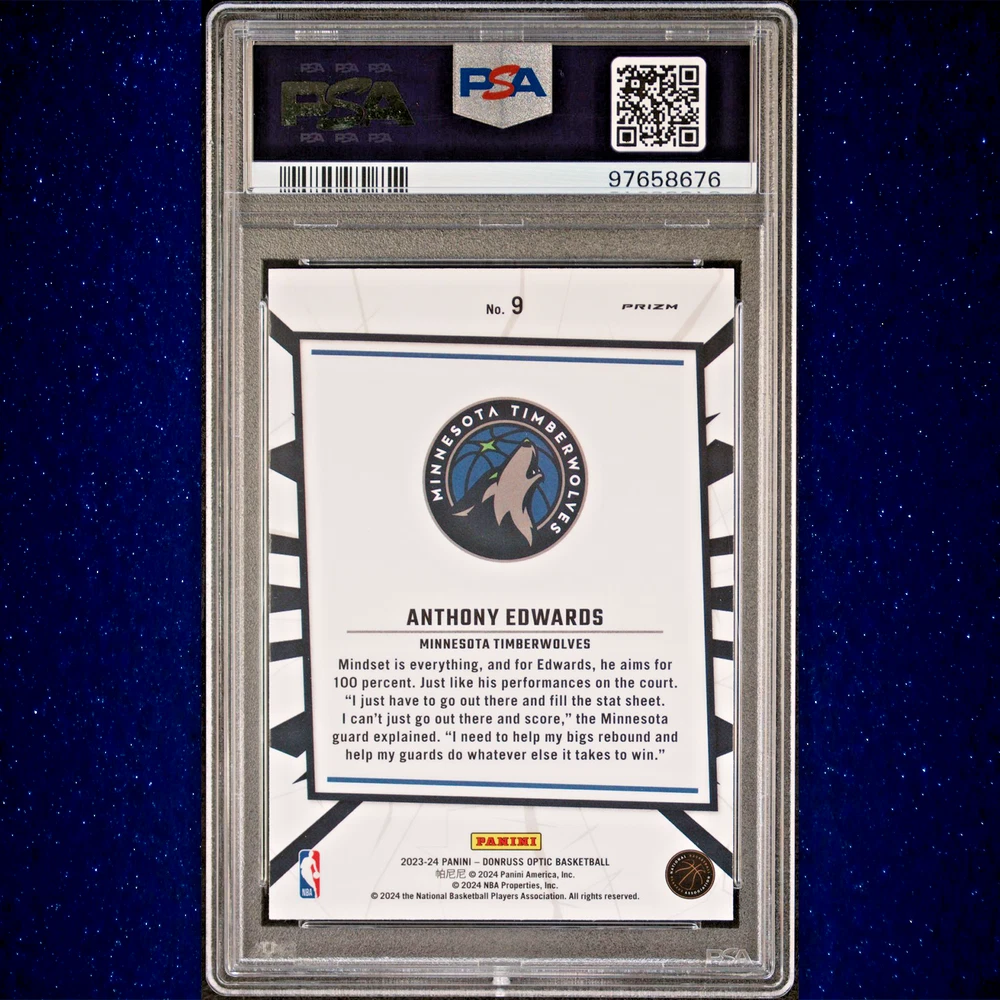 Anthony Edwards 2023 Panini Donruss Optic My House #9 Purple Prizm PSA 10