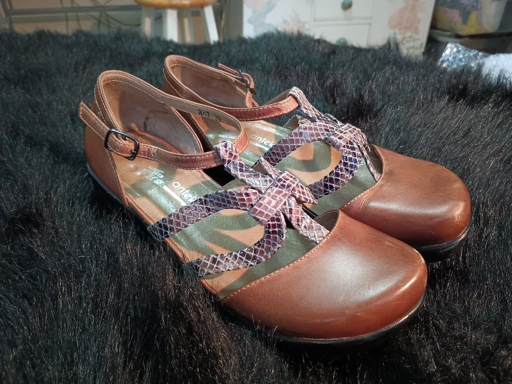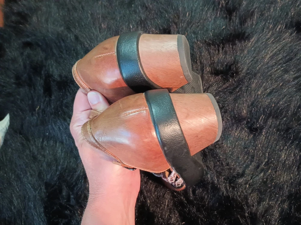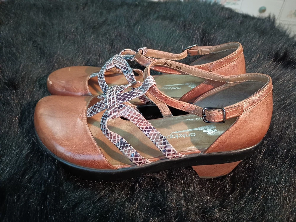 Elevate your shoe collection with these stunning Anthropologie Antelope Ankle Leather Wedge Sandals Closed Toe Shoes. Featuring a trendy animal print pattern with a snake character, these size 39/8 sandals in brown color are perfect for any fashion-forward woman. The slingback style, wedge heel and closed toe design add to the elegance of these platforms. The upper material is made of high-quality leather that ensures durability. These Anthropologie Wedge Sandals are a perfect addition to your footwear collection that will upgrade your entire look.
