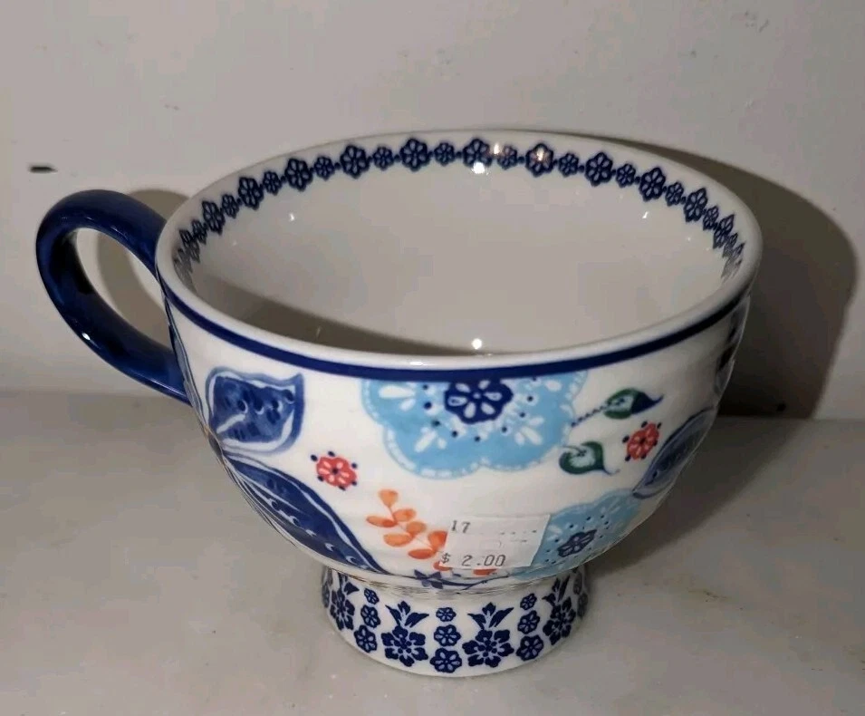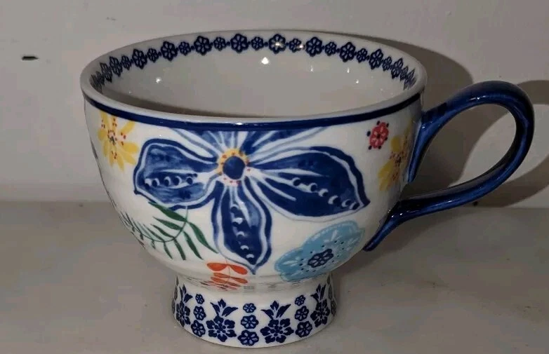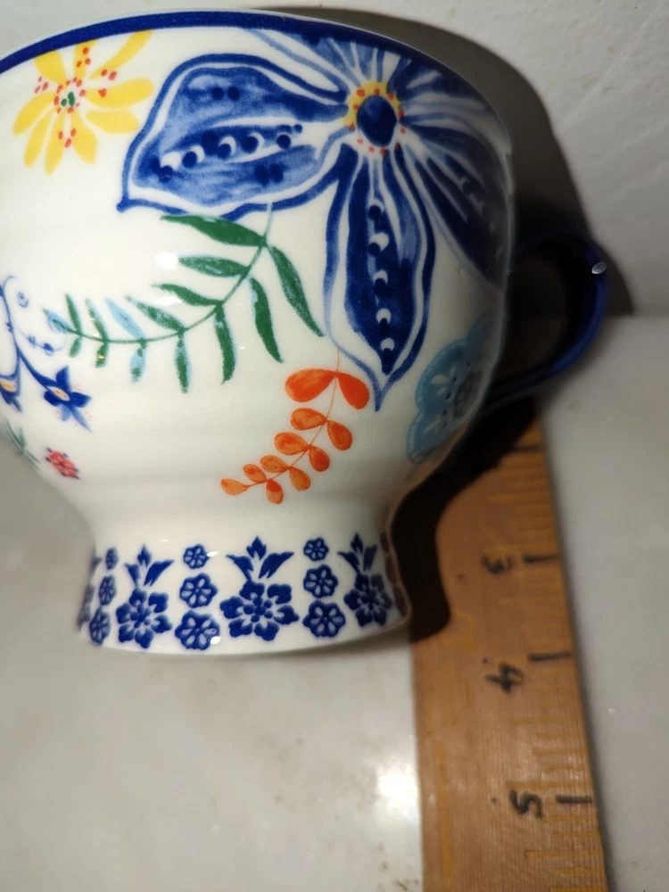 Elevate your morning routine with this stunning Anthropologie coffee mug. Crafted from high-quality ceramic, this cup features a beautiful floral design that adds a touch of elegance to your kitchen. This mug is perfect for all occasions, whether you're having a quiet morning or catching up with a friend over coffee. It is dishwasher safe and suitable for hot beverages. Add this beautiful mug to your collection today and make every sip worth celebrating.