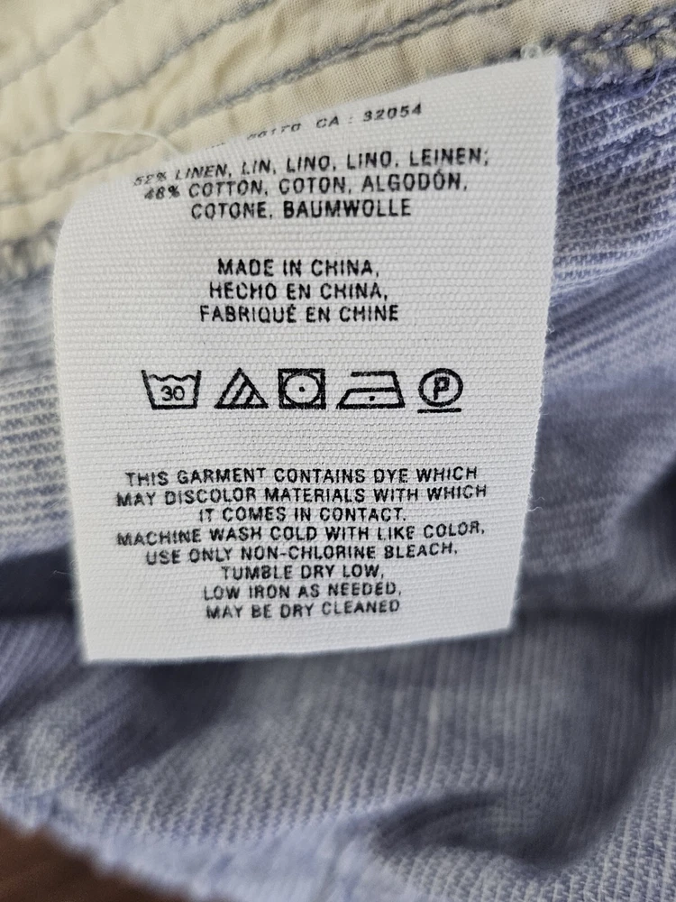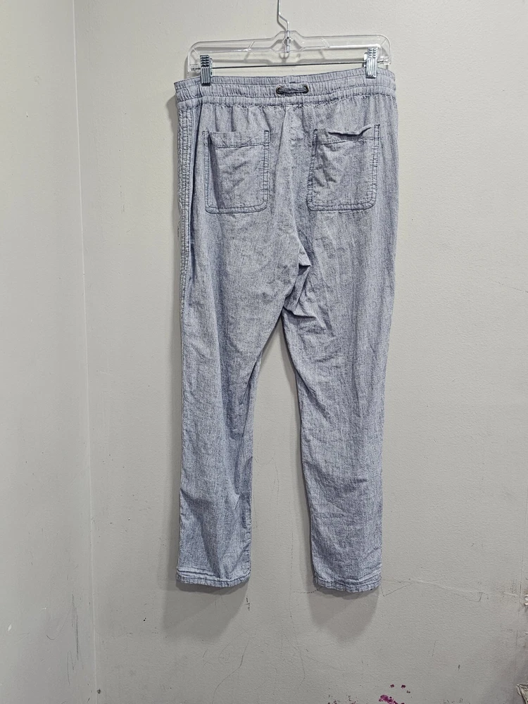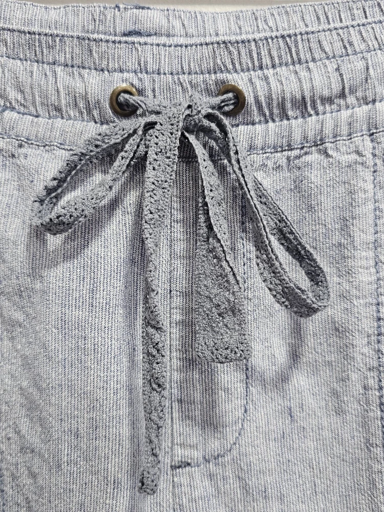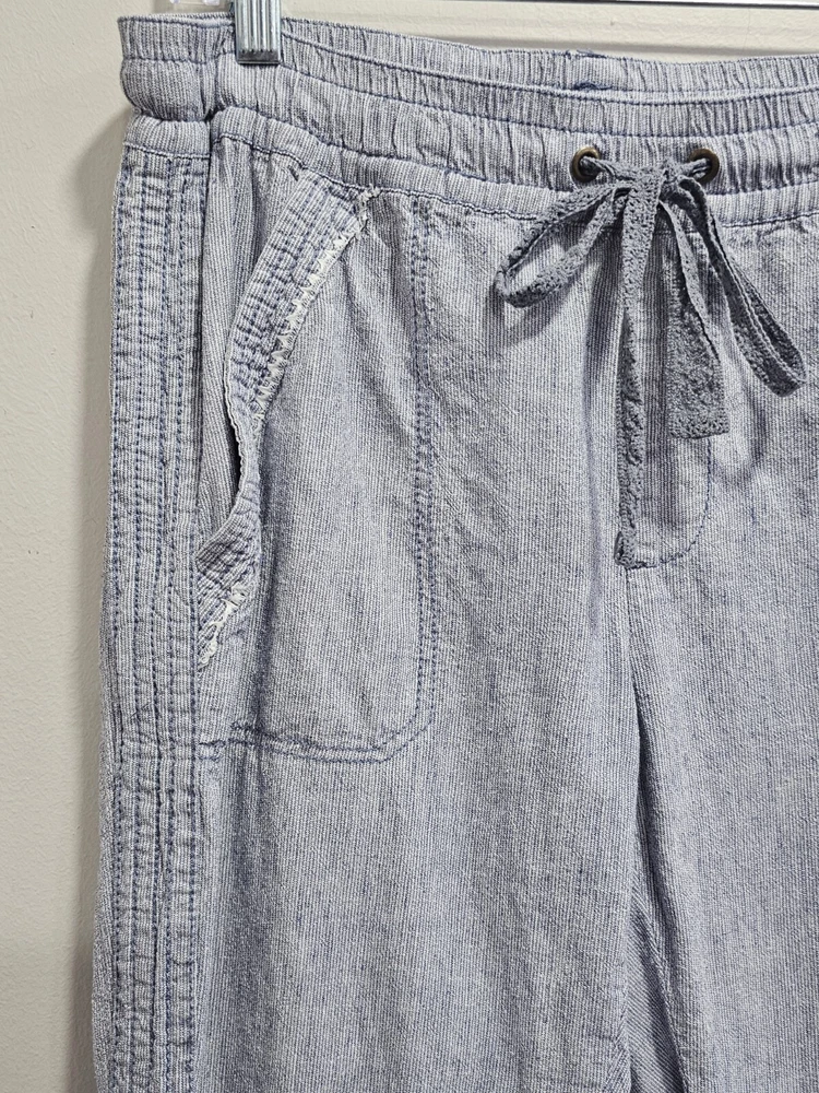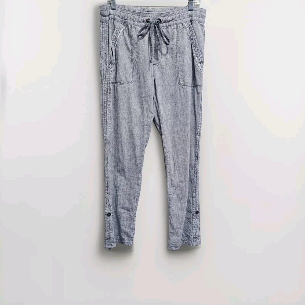 Material: Cotton, Linen Pattern: micro stripe Department: Women Fabric Type: Chambray Brand: Anthropologie Closure: Drawstring, Pull On Color: Blue Front Type: Flat Front Fit: Regular Leg Style: Straight UPC: Does not apply gtin13: Does not apply Style: Jogger Garment Care: Machine Washable Vintage: No Type: Pants Waist Size: M Size Type: Regular Handmade: No Personalize: No Season: Spring, Summer Theme: coastal, coastal grandma, beachy, Beach, Bohemian Features: Pockets Occasion: Casual Inseam: 27 in Size: M