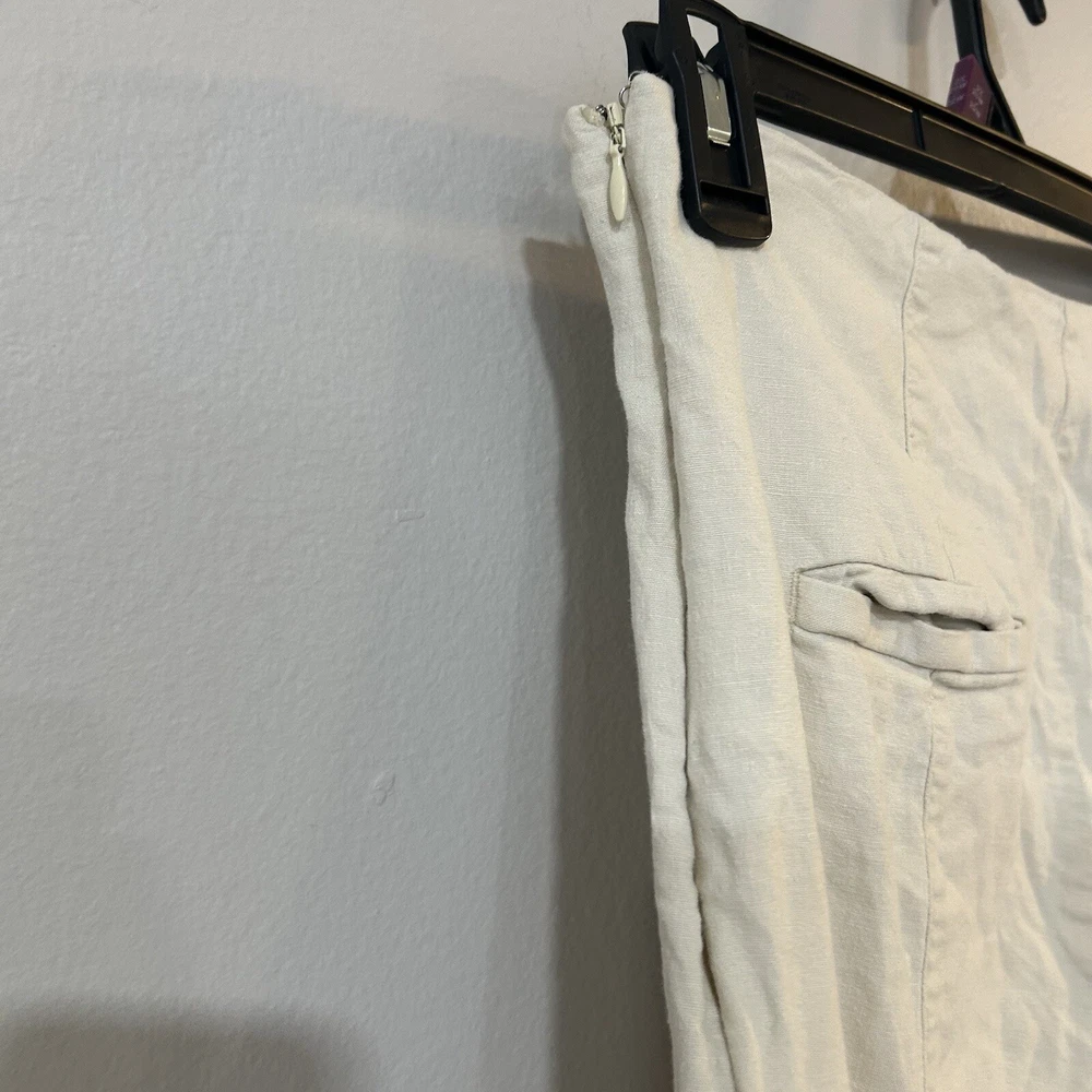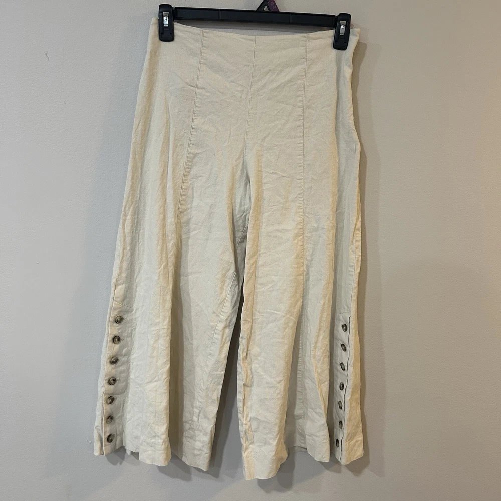 Anthropologie Linen Blend Ivory Cropped Wide Leg Side Button Pants Size 4 Small. Condition is Pre-owned. Shipped with USPS Ground Advantage.