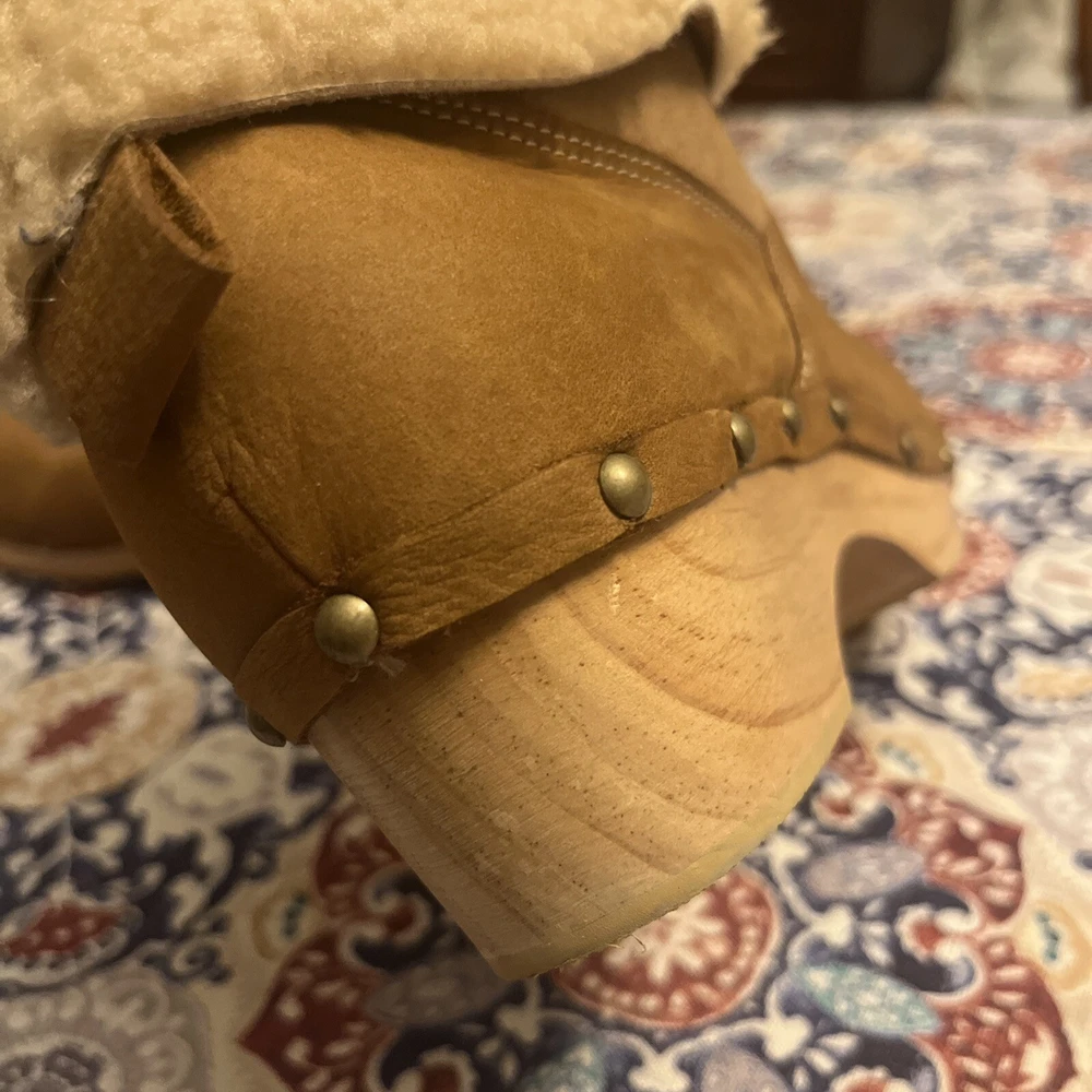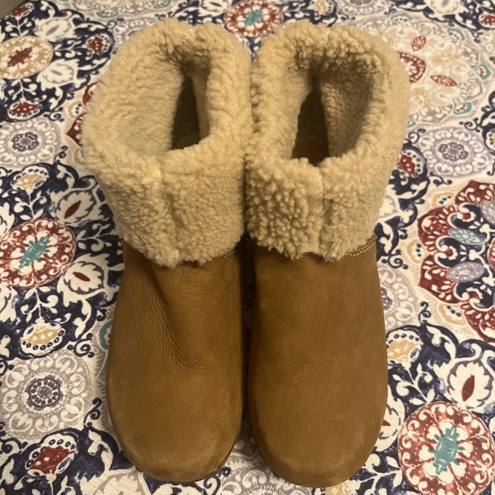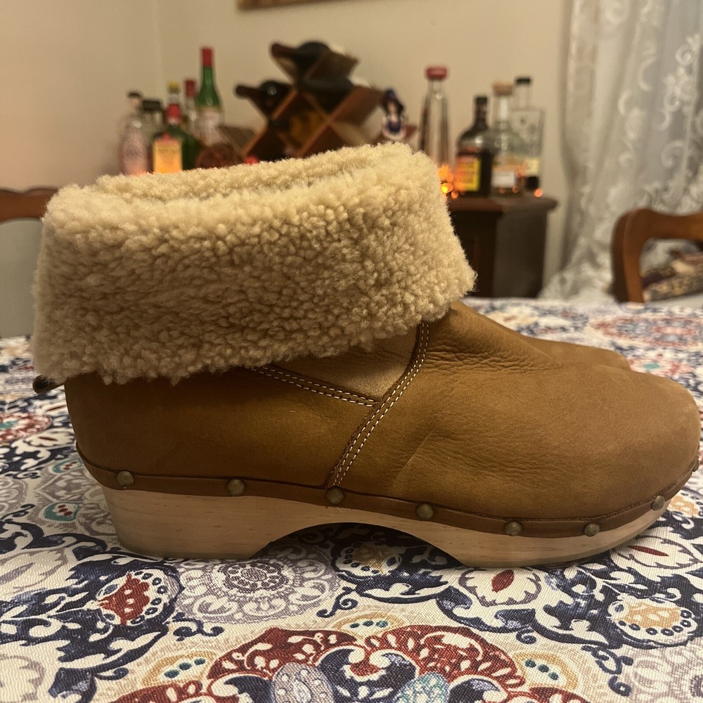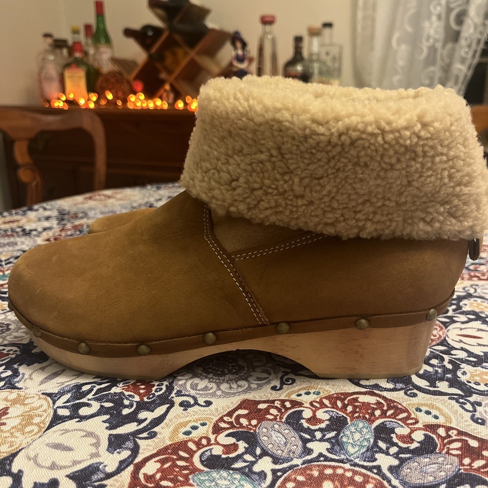 $ 19.86UGG leather shoes open peep toe boots Ginger brown booties Zip up women's 7