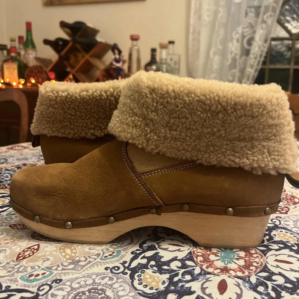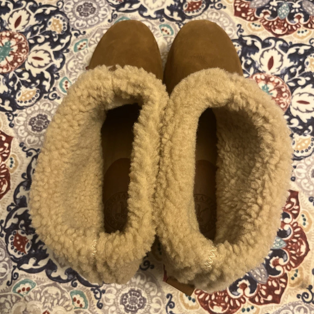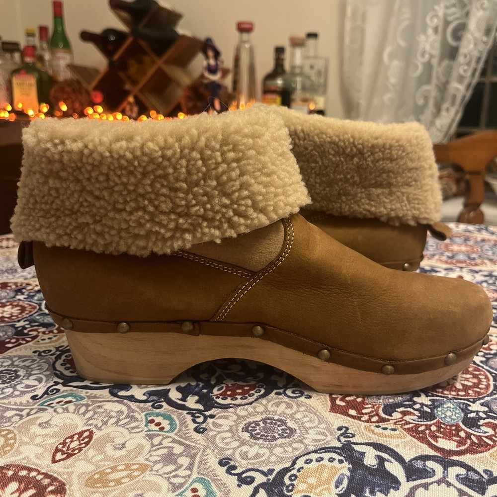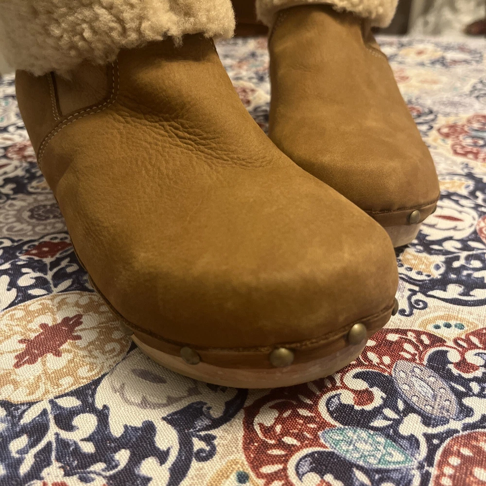 $ 19.86UGG leather shoes open peep toe boots Ginger brown booties Zip up women's 7