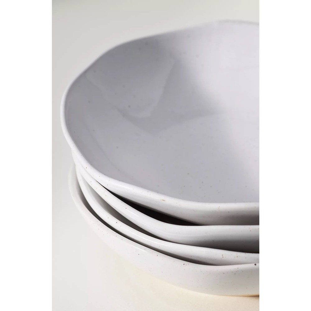 What You Need to Know Brand: Anthropologie Collection: Glazed Garage – Low Tide Item: Low Stoneware Bowls – Set of 4 Size: Each bowl approx. 9.5” diameter x 2.25” high Material: Glazed ceramic Color: Speckled neutral – handcrafted variation Condition: New with Tags, in original box Home: Smoke-free household Features Dishwasher and microwave safe Slight variations in glaze = artisanal charm Perfect for grain bowls, salads, pasta or ramen Great housewarming, wedding or hostess gift Shipping + Returns Ships next business day and packaged with care 30-day returns accepted (buyer pays return shipping) Tags: Glazed Garage, Low Tide bowls, ceramic bowls, stoneware bowls, modern farmhouse kitchen, white speckled bowls, salad bowl set, pasta bowl set, handcrafted ceramic, dishwasher safe, microwave safe, rustic dinnerware