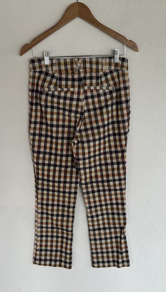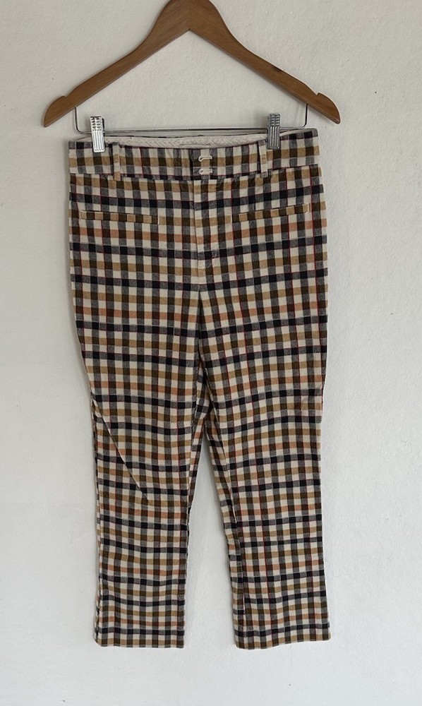 Style: Ankle Size: 4 Closure: Zip Front Type: Flat Front Pattern: Plaid Type: Pants Size Type: Regular Material: Cotton Blend Model: Skinny Kick Leg Style: Flared Department: Women Fabric Type: Corduroy Color: Black / Mustard / Cream Country of Origin: China Brand: Anthropologie