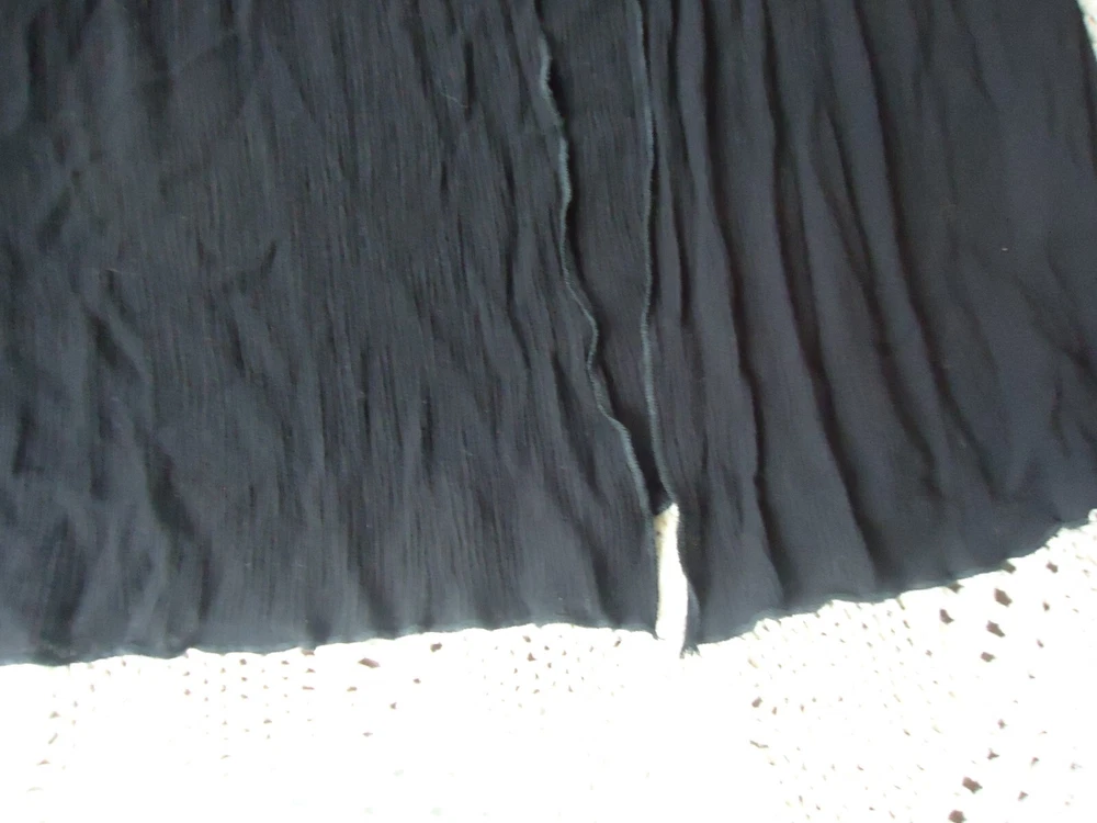 Anthropologie Wrap Dress By Lavender Field Women's Size L Black Gauzy flowy fabric with a lacy detailed waistline. This is preowned and in used condition and as such may show some minor signs of wear but it is in great condition overall. The tag that tells the material type and the washing instructions has been removed. Please see all pictures for measurements and condition. C4