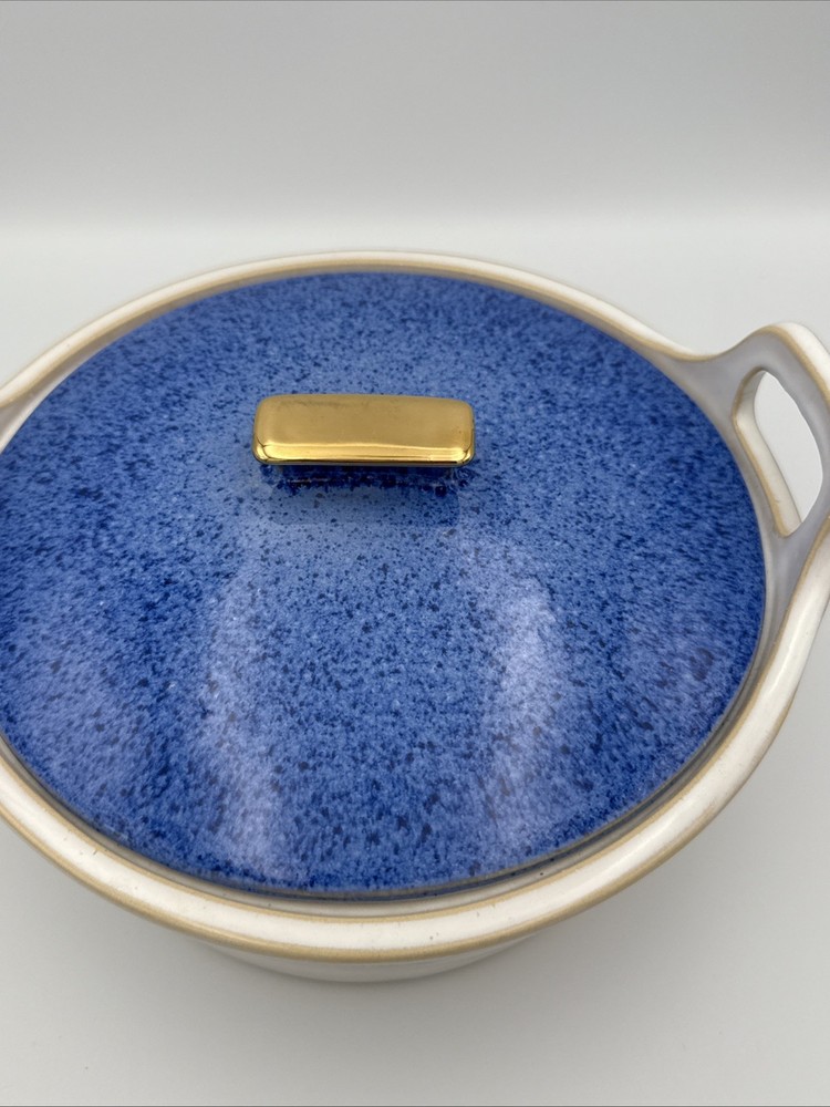 Crafted for the culinary enthusiast, this round pot with a matching blue lid is a versatile addition to any kitchen. Its ceramic surface ensures even heat distribution and easy maintenance, while the lid traps warmth and aromas during cooking. Suitable for both electric and gas stovetops, this piece is a testament to Anthropologie's commitment to quality and style. This Dutch Oven is an original, boasting a round shape that complements its functional design. The set includes the ceramic pot and lid, both adorned with the distinctive blue hue that lends an elegant touch to your cookware collection. Whether you're simmering soups or braising meats, this pot is sure to become a cherished staple in your culinary repertoire.