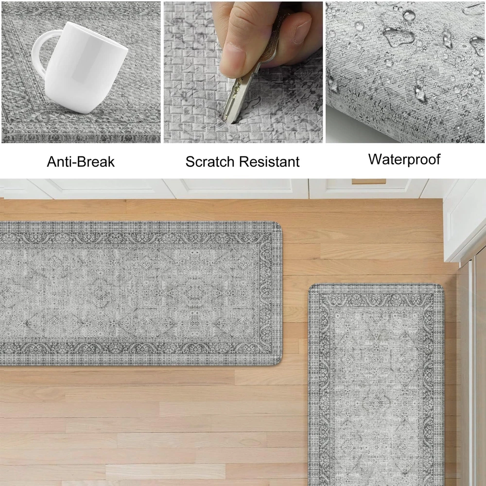 Anti Fatigue Kitchen Mat 2PCS,Waterproof Farmhouse Kitchen Rugs Non-Slip,Vint...