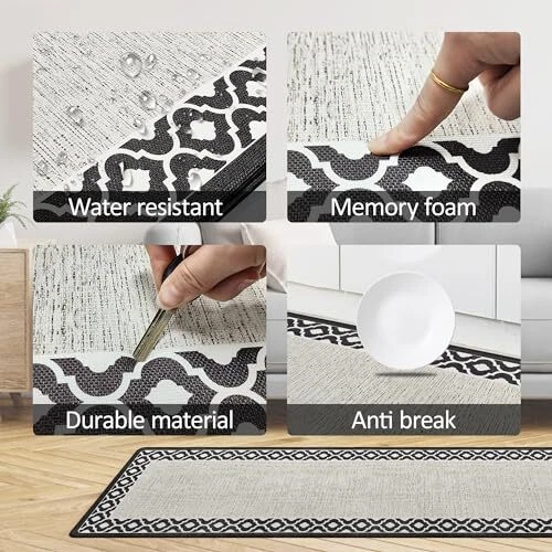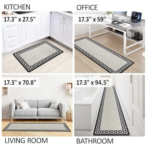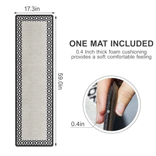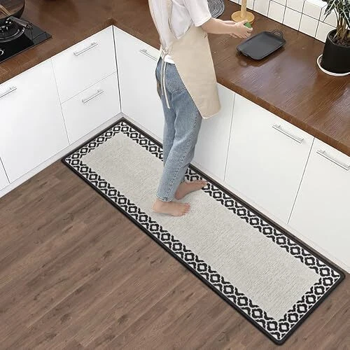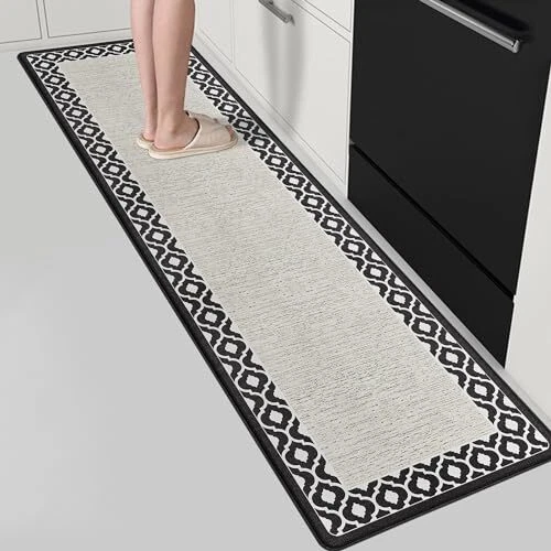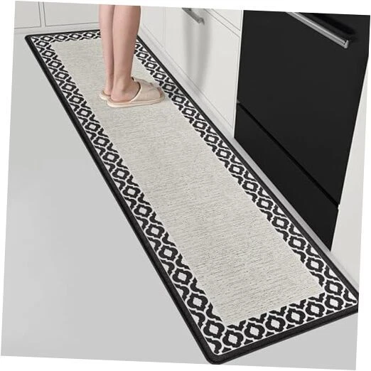 Anti Fatigue Kitchen Rug Non Slip Kitchen Mats for 17.3" x 59" White and Black