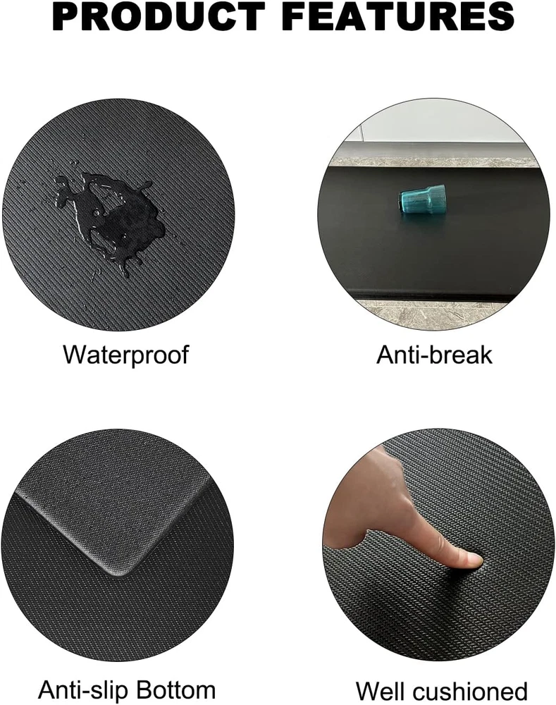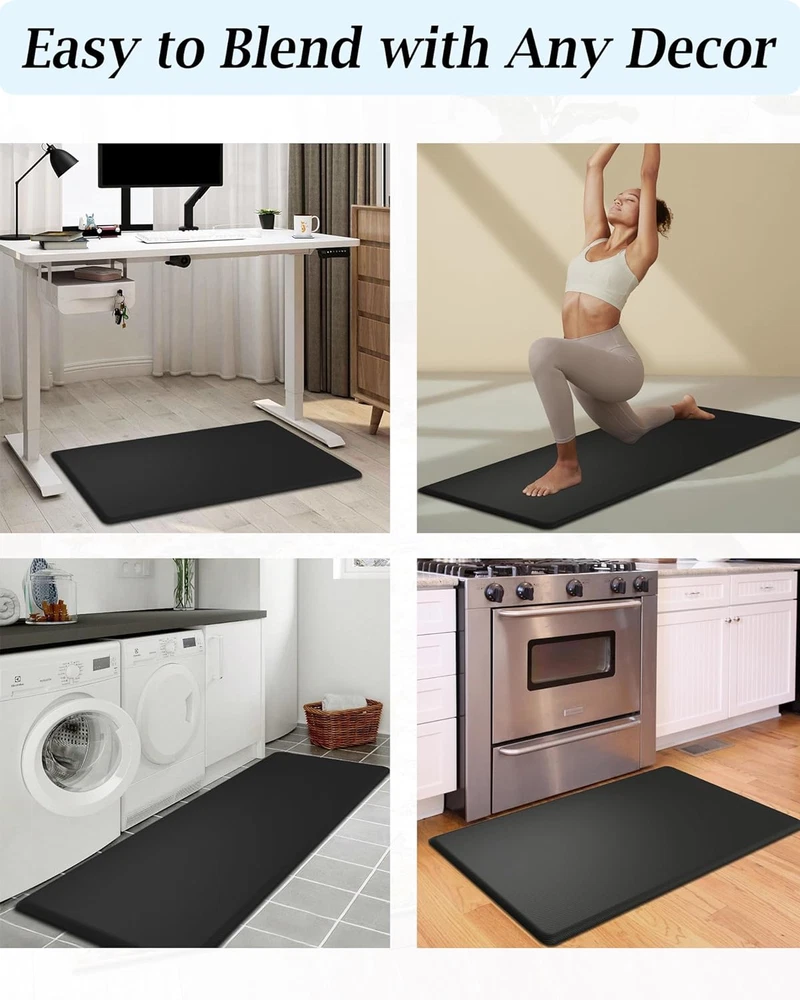 Store New Arrivals Add to Favorite View Feedback Contact Anti Fatigue Mat Standing Desk Office One Piece 0.75" Memory Foam 17.3" X 28" Description Item Thickness 0.74 Inches Additional Features Cushioned, Non-Slip Bottom, Stain Resistant, Waterproof Item Dimensions L x W x Thickness 28"L x 28"W x 0.75"Th Pattern Single Material Type Memory Foam Color Black Shape Rectangular Product Care Instructions Wipe with damp cloth or vacuum Material Type Free Phthalate Free Special Feature Cushioned, Non-Slip Bottom, Stain Resistant, Waterproof Material Memory Foam Shape Rectangular Size 28"L x 17.3"W x 0.8"Th Safe Kitchen Mat Long Runner for Home: Kitchen floor mat cushioned anti fatigue. One piece 3/4 inch thick cushioned kitchen floor mat. The anti fatigue mat standing desk office measure: 17.3"x28", perfect for standing desk,office, kitchen floor or laundry.The anti fatigue mat for standing desk is made of cushioned memory foam, high quality mat materials will not break down or compress over time. It is lightweight and could be continually used for a long time Ergonomic Kitchen Mats for Floor Anti Fatigue Mat:18mm thick mat for standing desk anti-fatigue provides more cushion and stability. This memory foam non slip kitchen rug is safer and more comfortable than others in the market. The kitchen mat anti fatigue is perfect for people who stand for long periods of time, and help relieve back pain, the pressure of your knees, and the fatigue of your feet caused by standing Non-skid Kitchen Mats Cushioned Anti Fatigue: The standing desk anti fatigue mat is designed with non-slip backing that makes the kitchen floor mats for in front of sink keep in place well, helpful to protect you from slipping and tripping. Cushioned kitchen mats for standing are stain-resistant and waterproof, simply wipe off the dirt and dust with a damp cloth or vacuum Stylish Ergonomic Floor Mats for Standing Decor: The modern black kitchen mats for floor provide an extra large activity area in work place, office, laundry room, kitchen, or any other high-traffic place. The kitchen mats cushioned anti fatigue are made of the safest memory foam material, that is no phthalate, no latex, and no odor and the neutral color matches any décor and it is a great kitchen mats for your family Cushioned Floor Mat Tips: After receiving the kitchen floor mat, you can lay the anti fatigue kitchen rugs flat and wait for some time and then the kitchen mat's surface will return to a flat state.The kitchen sink floor mat underlay should be clean, flat, and dry before placing the mat on the floor Product Description ABOUT US We offer the best prices around on high quality products. Our E-store includes media such as books, movies, music and games while offering electronics, toys, sporting apparel, clothing, tools, general home, garden items and more. SHIPPING We are always working hard to ensure your package arrives as soon as possible. Please understand that some factors like weather, high postal traffic, and the performance of shipping companies are outside of our control. We offer free shipping to the lower 48 states and ship within 2 business days of payment, usually sooner. We do not accept P.O. Boxes. Please provide a physical address. RETURNS We offer a 30-Day Return Policy on items which you are not completely satisfied with. You have the option for a full-refund or an exchange of the item. No returns are available on items shipped outside of the USA. PAYMENT We accept PayPal. CONTACT US This page content is yet to come Please ad us to your favorite seller and visit again later Thank You CUSTOMER SATISFACTION We try our very best to make sure every customer is completely satisfied. If there's a problem, message us! We're happy to help.