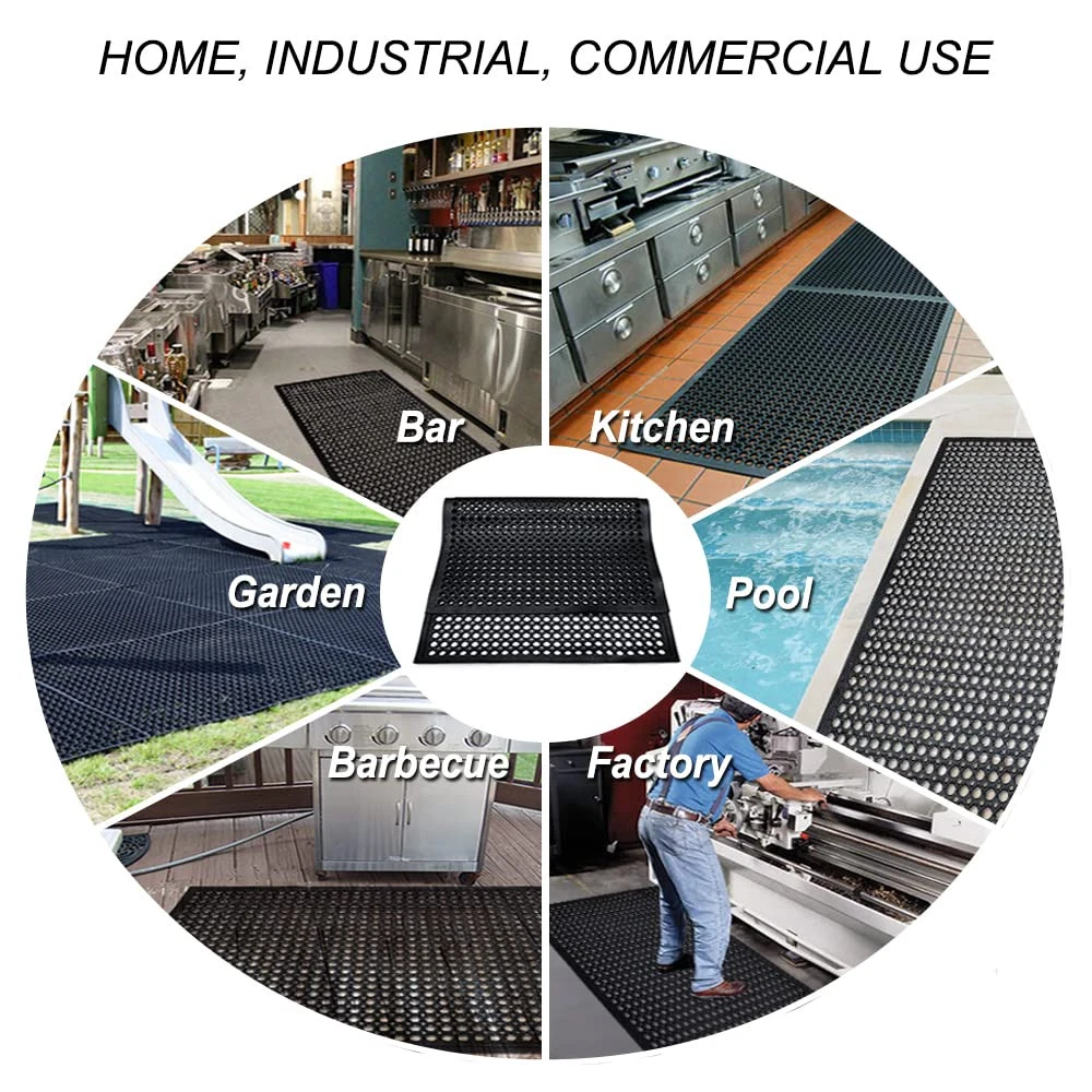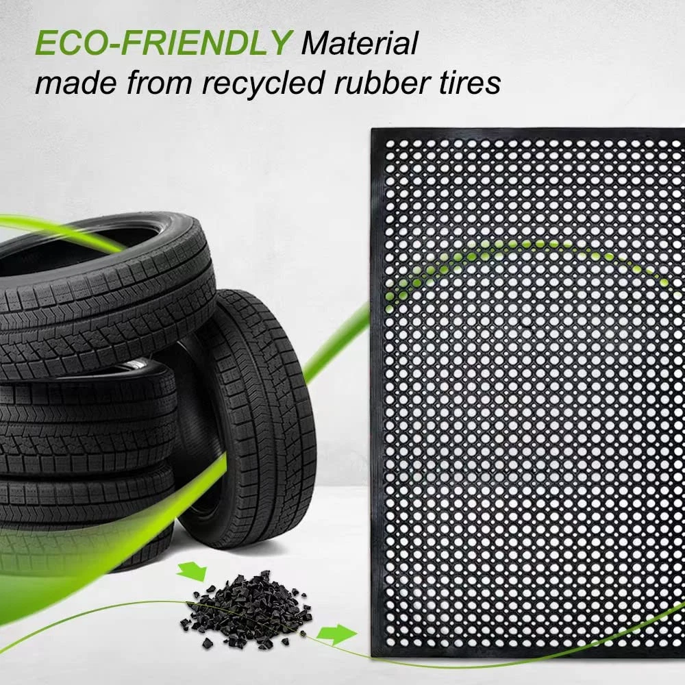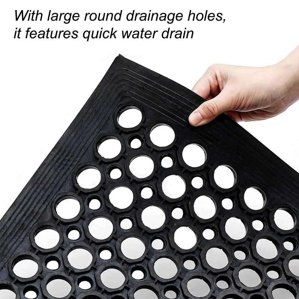 Outdoor Rubber Drainage Floor Mat for Kitchen Bar Pool Garage Home and Industrial Use Protect Your Floor from Damage or Dirty , No Sliding Design Ensure the Safety of You and Your Family Material: Recycled rubber (tyre rubber) The size is 36" x 60' and can not be interlocked 👍Multi-Functional mat - our commercial floor mat is ideal for house garden, kitchen, restaurant, as well as warehouse , industrial areas where moisture and heavy foot traffic 👍Rubber Drainage Floor Mat - built with large hexagonal drainage holes which help to reduce slippery liquids and oils left on the floor and prevent dangerous accident. The holes and perforated design of this all purpose entrance doormat traps dirt, preventing it from spreading. Simply hose the mat with water to clean up any dirt 👍Heavy Duty Rubber Floor Mat, Waterproof Doormat Created with long lasting natural, recycled rubber and extremely durable 👍Easy to Clean - for Kitchen Bar Pool Garage Home and Industrial Use 👍US STOCK ,Package Include 1 x Outdoor Floor Mat 👍Drainage Mat Avoid Sliding- large hexagonal holes help to reduce the amount of slippery liquids and oils left on the floor and prevent dangerous accident