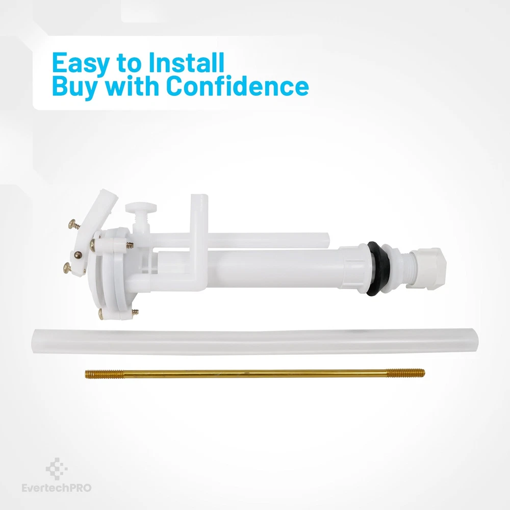 Introducing the EvertechPRO Toilet Fill Valve Kit, a must-have for any bathroom. This kit is the ultimate solution for toilet repair parts inside the tank. It's a comprehensive toilet repair kit inside the tank that includes everything you need for a quick and easy toilet plumbing valve repair. The kit contains a coast type, anti-siphon ballcock that ensures optimal performance and safety, preventing backflow of contaminated water into your potable water supply. The EvertechPRO toilet fill valve replacement kit also comes with durable construction and an aluminum float rod that guarantees longevity and reliability. Whether you need to replace the fill valve for your toilet tank or need a complete toilet parts inside tank kit, this set has got you covered. What makes this toilet replacement kit inside the tank stand out is its universal fit. It can be used as a toilet pump replacement kit or a replacement fill valve toilet. It's the perfect choice for any toilet, whether you need a replacement toilet fill valve, toilet repair parts inside tank, toilet reservoir parts or a ballcock valve for your toilet. The kit includes a toilet tank fill valve, filling replacement parts, and a toilet filler valve. It's designed for easy installation, so you don't have to be a plumbing expert to use it. The EvertechPRO toilet fill valve kit is not only a functional solution but also an economical one, eliminating the need for costly plumbing services. The kit also includes a quick fill valve for faster water refill in your toilet tank. With this kit, you can easily rebuild and repair your toilet's inner workings, ensuring that it functions efficiently for years to come. The EvertechPRO toilet fill valve replacement kit is designed for both professionals and DIY enthusiasts. It's an excellent addition to your toilet water tank parts collection, ensuring that you have everything you need for any toilet plumbing task. EvertechPRO is known for its quality and reliability, and this toilet ballcock is no exception. Made with durable materials, it's built to last, ensuring that your toilet performs optimally. Invest in the best with the EvertechPRO Toilet Fill Valve Kit. It's the ultimate in toilet repair, ensuring that your toilet is always in perfect working condition.