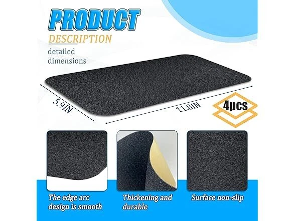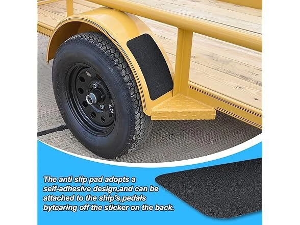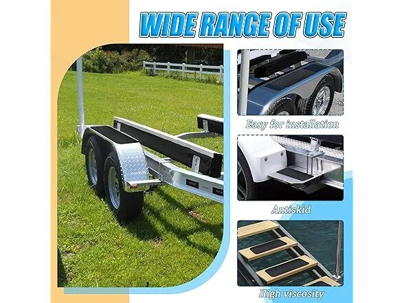 Anti-Slip Traction Grip Tape 4 Pack Condition: New Color: Black Size: 6-Inch X 12-Inch Features 1 Great non skid performance with mega strength stick adhesion, Helps protect the paint when stepping up on the trailer and from slipping. Perfect size for your trailer fenders, this was easy to install for our boat ladder area, glued fine and strong, it works perfectly. Great adhesion, This worked ok to keep things from sliding in the hull of a kayak, Great for boat trailer fenders. Boat trailer steps non-skid pads has excellent grip, thicker material, very rough grit which will prevent anyone from slipping. If you have any questions, please contact us and we will provide you with a satisfactory solution. Specs In the Box: (1) Anti-Slip Traction Grip Tape 4 Pack