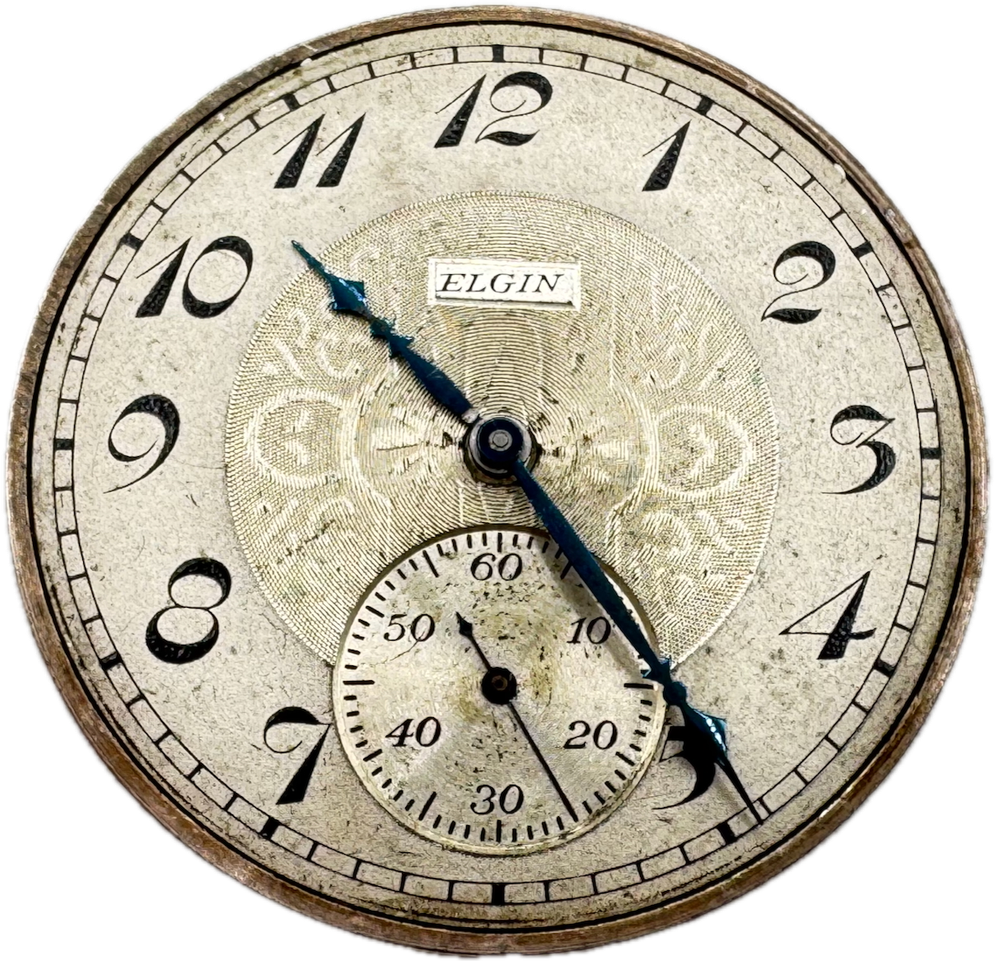 Antique 12s 1924 Elgin 15 Jewel Mechanical Pocket Watch Movement 315 USA Product Description Item: Pocket Watch Movement Brand: Elgin Movement: Mechanical Production Year: 1924 Country: USA Jewels: 15 Jewel Gender: Men's Grade: 315 Size: 12s Product Measurements Diameter: 39.5mm Product Condition Overall Condition: Fair, overall condition for its age. Functions: Not running as it is for parts Dial: The dial has scratches and discoloration. Hands: There is discoloration on the hands.