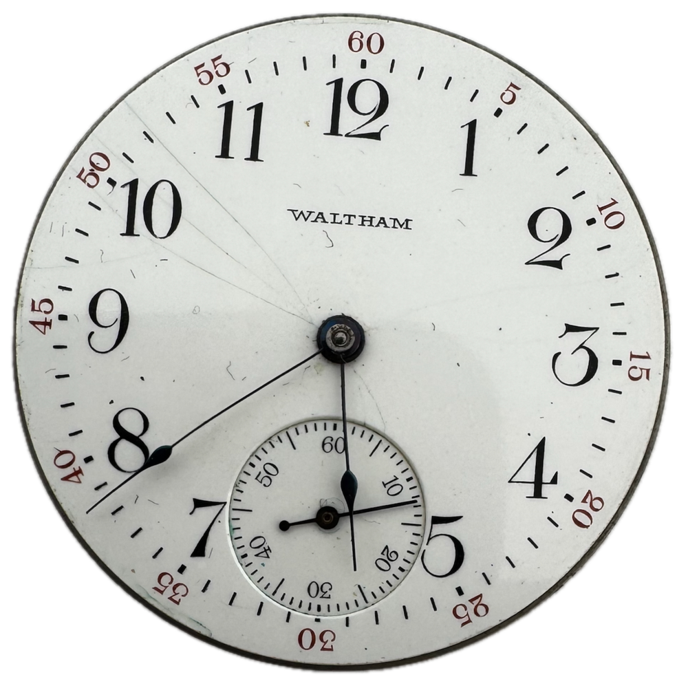 Antique 16s 1911 Waltham 7 Jewel Mechanical Pocket Watch Movement 610 USA Product Description Item: Pocket Watch Movement Brand: Waltham Movement: Mechanical Production Year: 1911 Country: USA Jewels: 7 Jewel Gender: Men's Grade: 610 Size: 16s Product Measurements Diameter: 43mm Product Condition Overall Condition: Fair, overall condition for its age. Functions: Not running but the balance complete is in good condition. Dial: The dial has hairline crack(s) on it. Hands: The hands are bent.