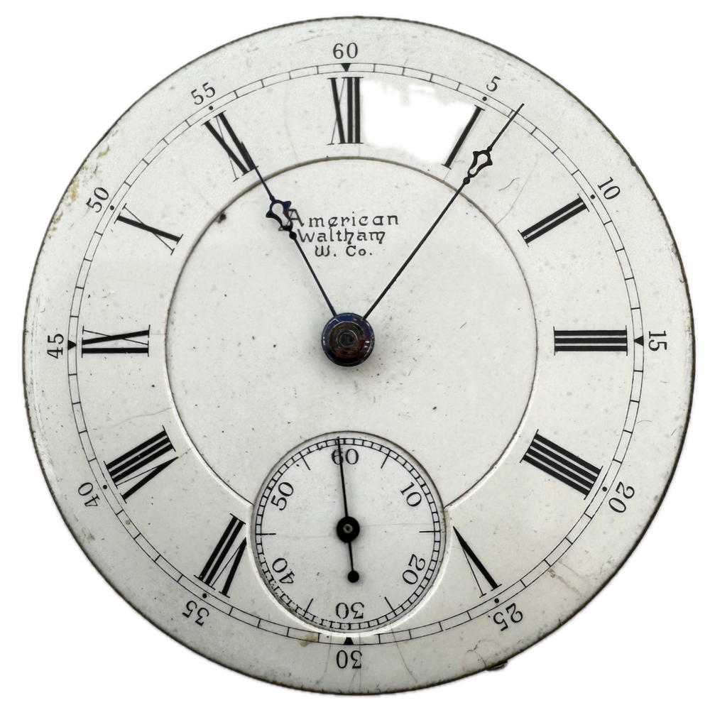 Antique 18 Size 1889 American Waltham 15 Jewel Hunter Pocket Watch Movement Product Description Item: Pocket Watch Movement Brand: American Waltham Movement: Mechanical Production Year: 1889 Country: USA Jewels: 15 Jewel Gender: Men's Size: 18 Size Product Measurements Diameter: 46mm Product Condition Overall Condition: Fair, overall condition for its age. Functions: Running, but may be in need of service. This means, it can run unreliably, start or stop and timekeeping is not guaranteed. Dial: The dial has hairline crack(s) on it.