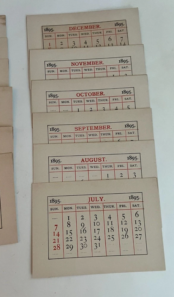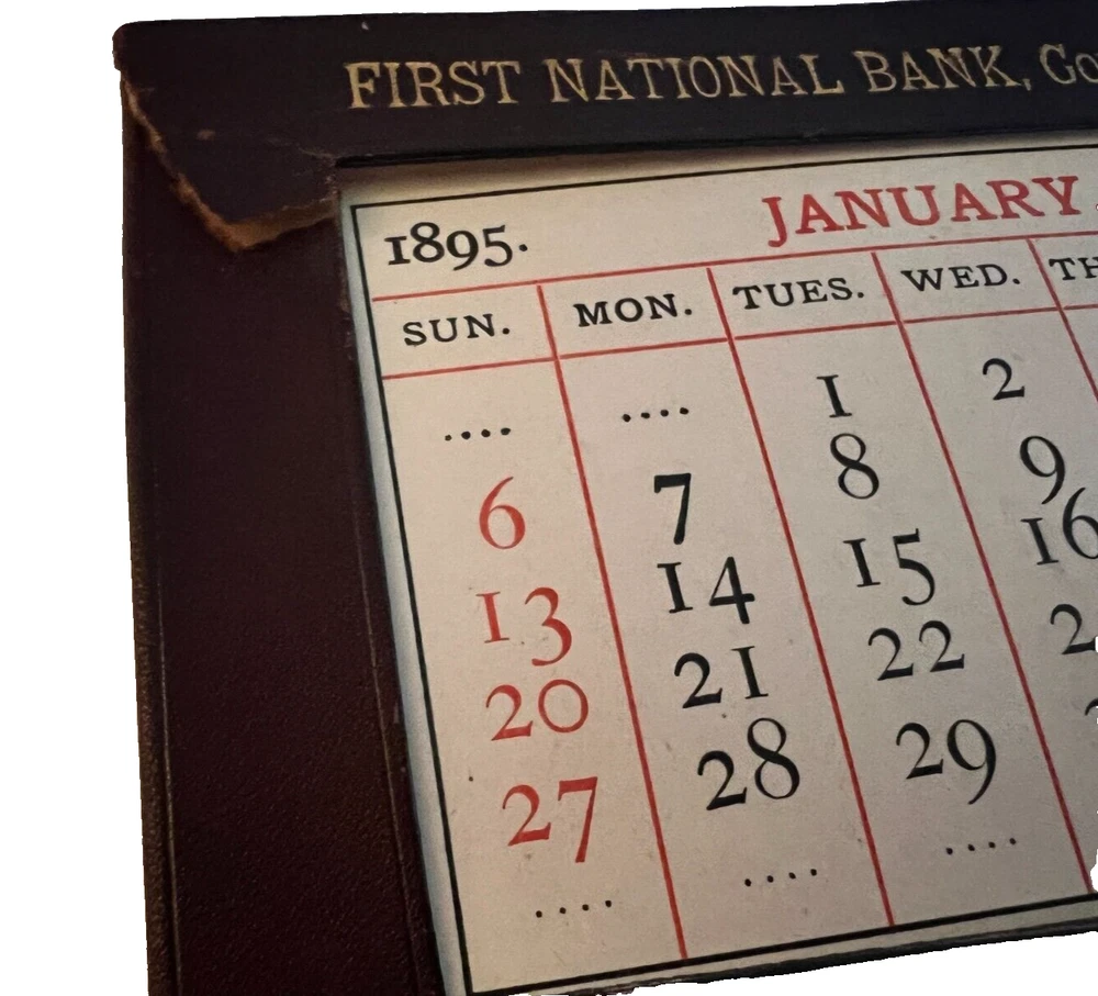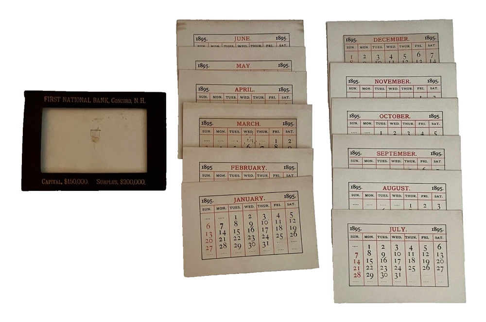 Antique 1895 First National Bank Concord (NH) Wall Hanging Calendar 12 Months