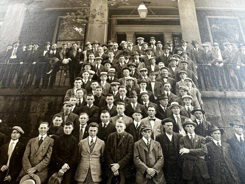 This is an antique 1900s photograph featuring 100+ men, likely of a fraternal or Masonic organization. The photograph is large, measuring 7.5" x 9 5/8" mounted to a cardboard mount measuring 11.75 x 13.75 inches, and is mounted on cardboard. It is a black and white original print from the early 1900s, showcasing a vintage piece of collectible history. Image has a photographer name on the bottom left of the mount, it's either Mcluxy or McLury, Shipping and Handling for our Photographs is $5.00. This rate is good for a single photograph or unlimited photographs. We ship first-class mailers by USPS with bubble mailers when your total order is less than $100.00. If your order exceeds $100, we will ship by USPS Priority Mail. All packages shipped will include a tracking number. We have a 14-day return policy for all items. We will leave feedback when your item is packaged and shipped. Please return this feedback as our receipt you have received the item.