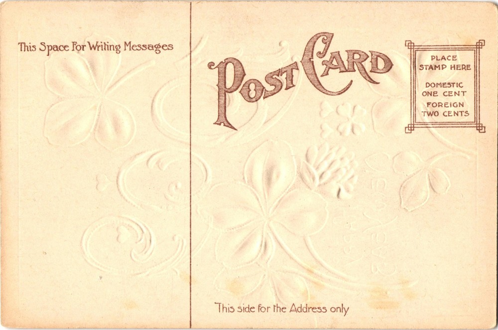 Beautiful antique New Year postcard dated 1909 , featuring a classic good luck clover design with richly embossed details and elegant gold numerals suspended by decorative chains. The green clovers symbolize prosperity and good fortune, making this a highly desirable theme among early holiday postcard collectors. This card is a color lithograph with extensive embossing , visible on both the front and reverse, showcasing the high-quality printing typical of German-produced postcards from the early 20th century. The soft blue background, raised gold accents, and floral elements give the card excellent visual depth and texture. An unused example , which is increasingly difficult to find for embossed New Year postcards of this era. Ideal for collectors of New Year postcards, good luck themes, clover imagery, or Art Nouveau–influenced holiday designs . 📦 Free shipping included .