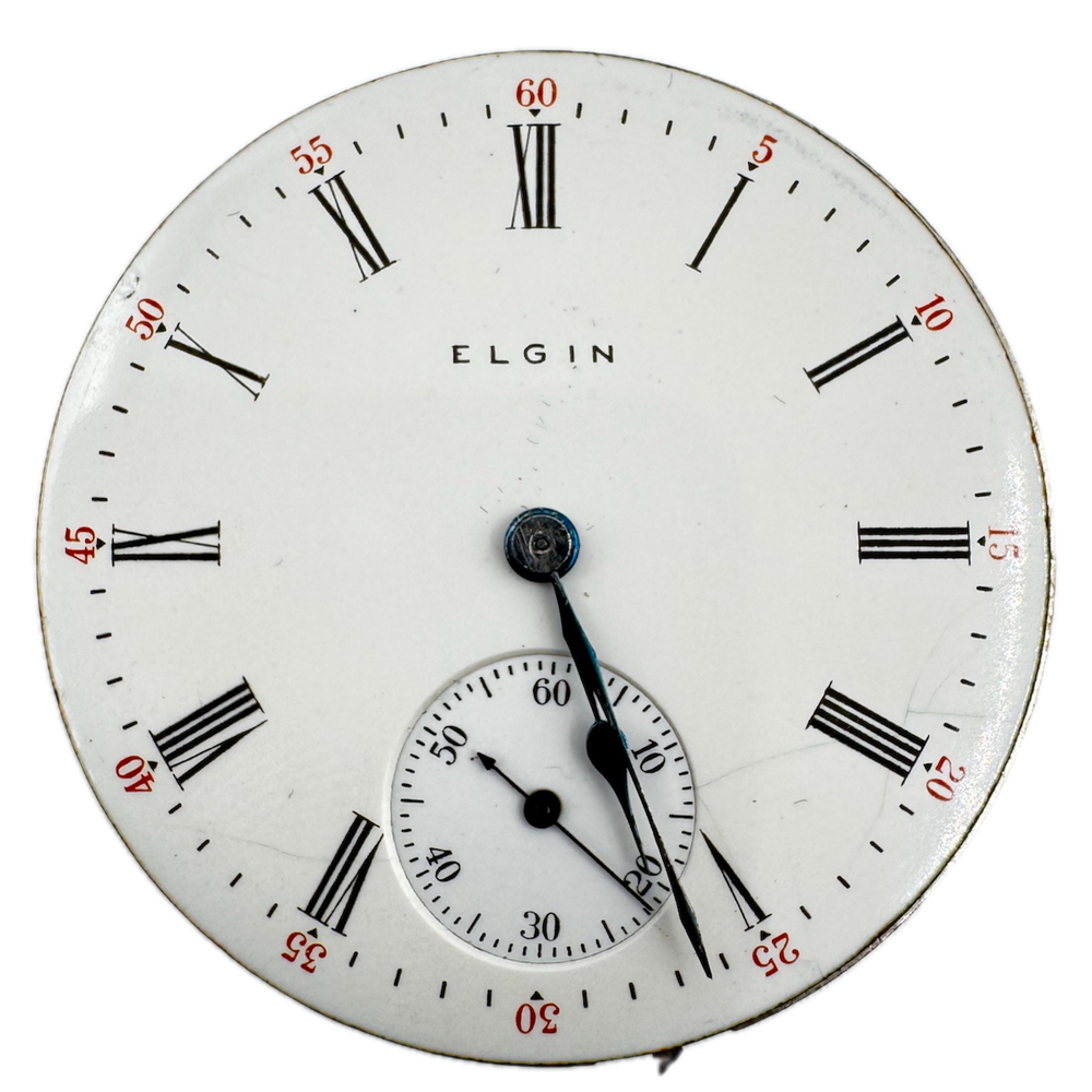 Antique 16s 1910 Elgin 7 Jewel Mechanical Hunter Pocket Watch Movement 290 USA Product Description Item: Pocket Watch Movement Brand: Elgin Movement: Mechanical Production Year: 1910 Country: USA Jewels: 7 Jewel Gender: Men's Grade: 290 Size: 16s Product Measurements Diameter: 43mm Product Condition Overall Condition: Fair, overall condition for its age. Functions: Running, but may be in need of service. This means, it can run unreliably, start or stop and timekeeping is not guaranteed. Dial: The dial has hairline crack(s) on it. Hands: There is discoloration on the hands.
