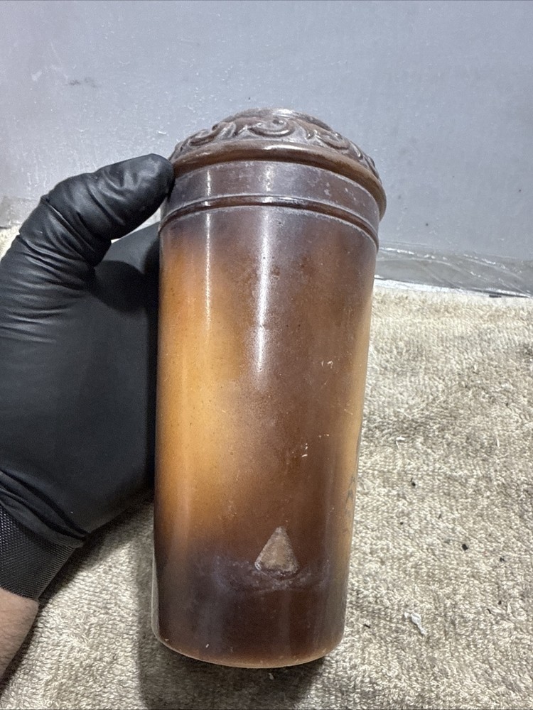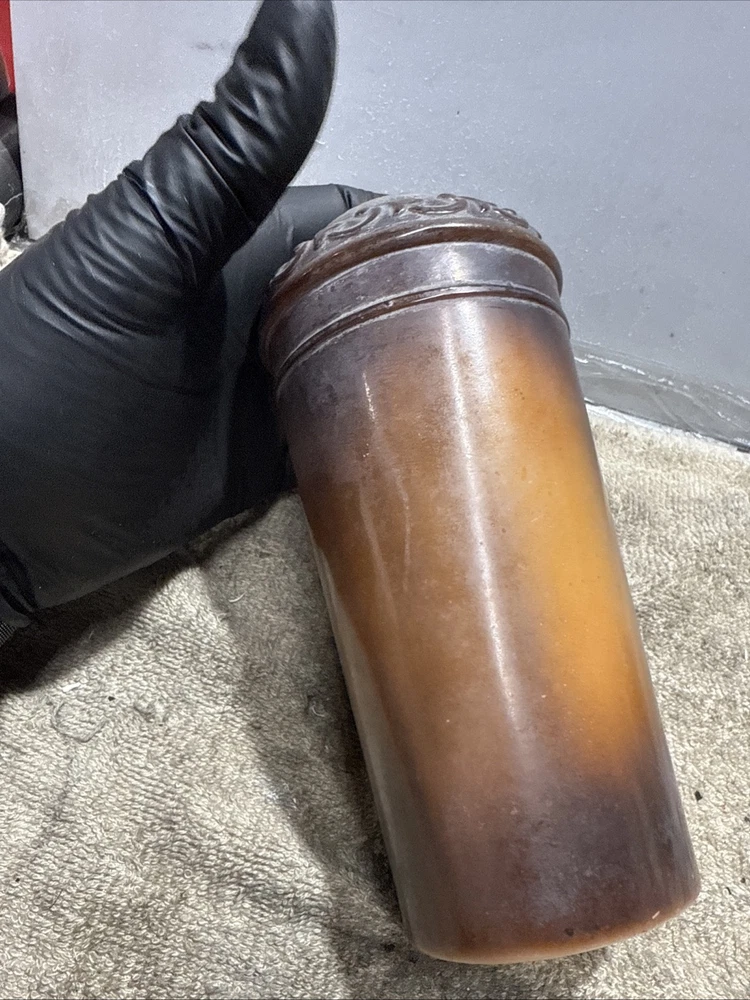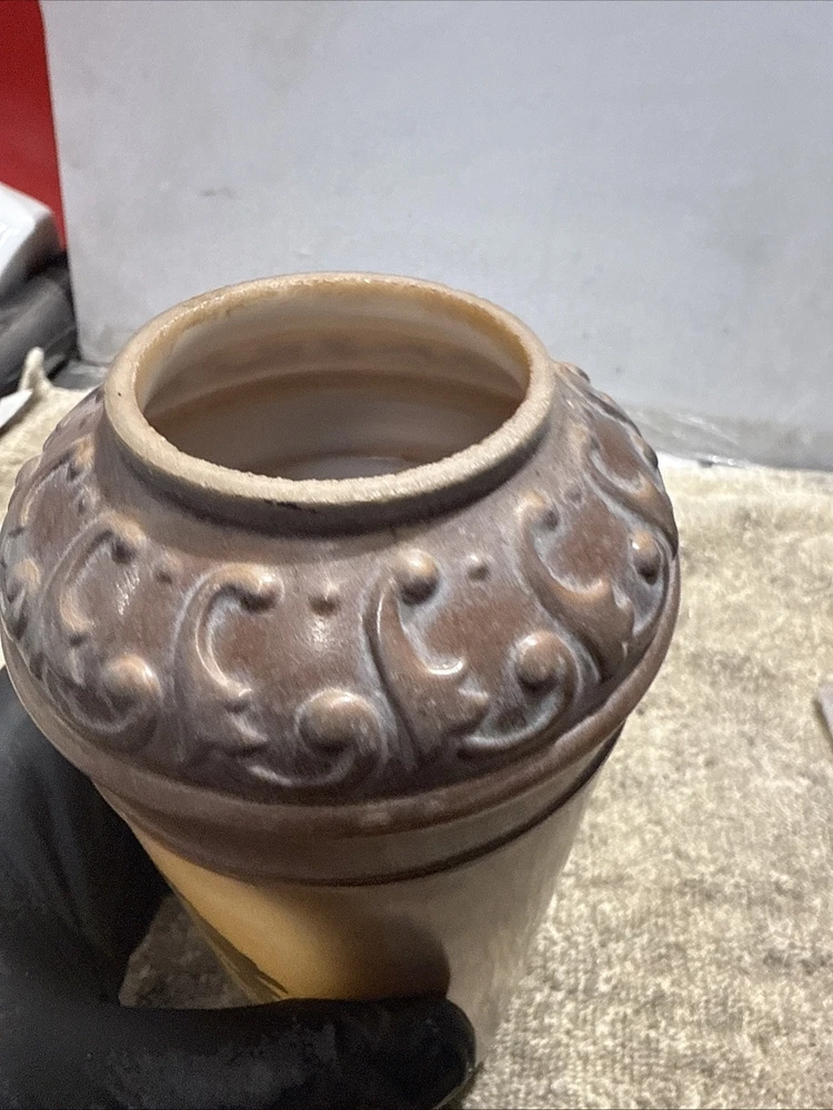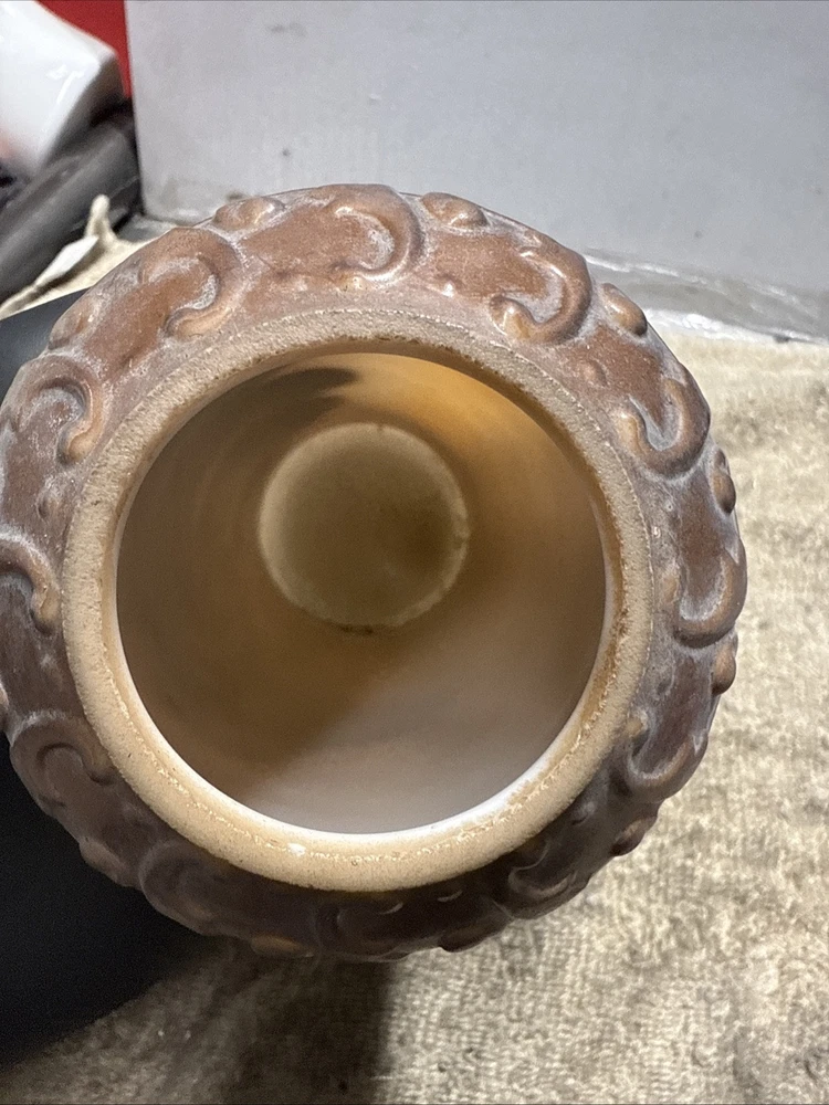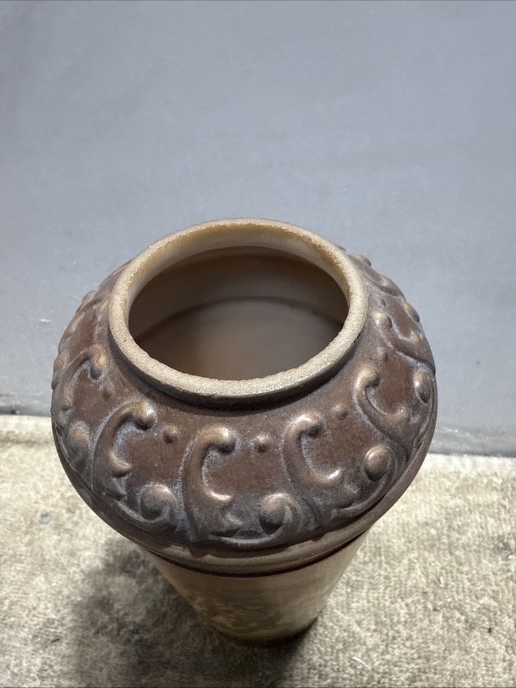 $ 13.2Hand-Crafted MCM Floral Scroll Etched Clay Vase 11.5 Inch Mid Century Decor