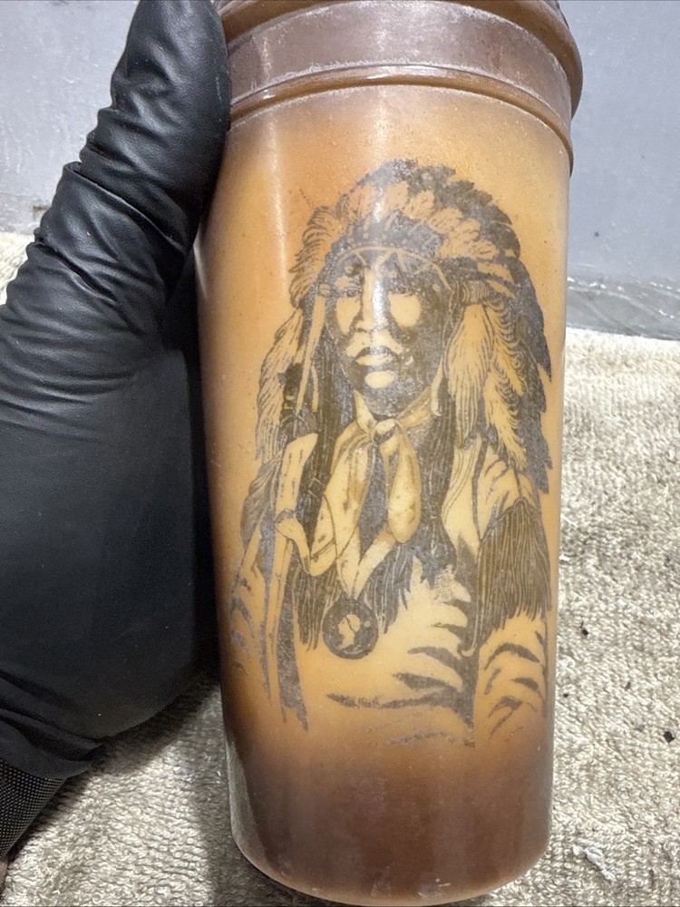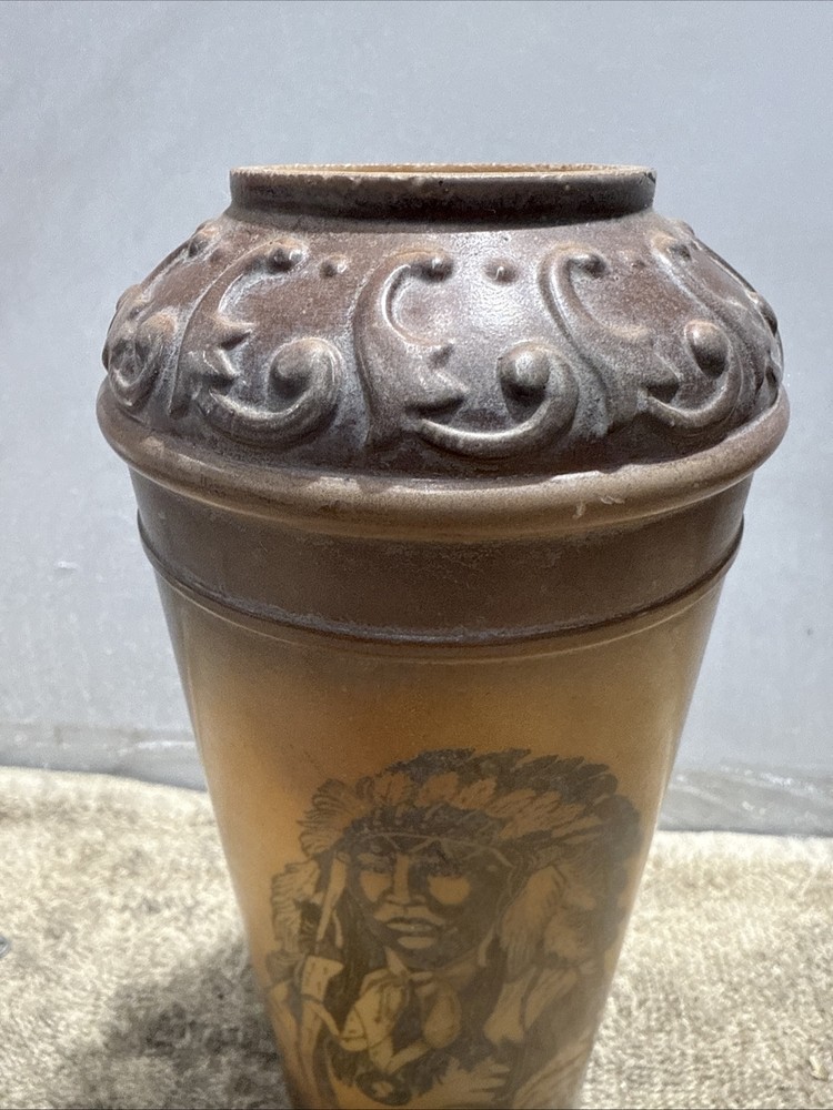 Antique 1910 Westmoreland Fostaria Milk Glass American Indian Chief Vase 7.5”