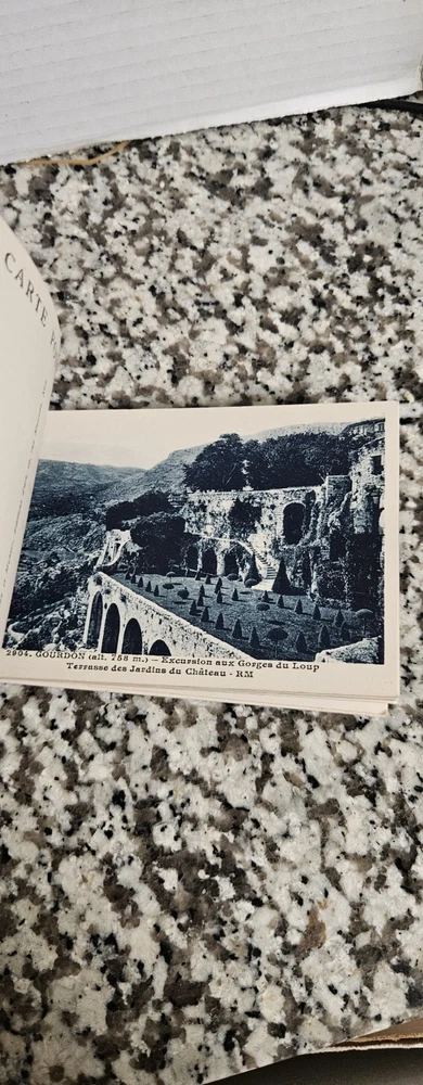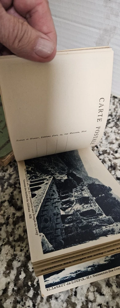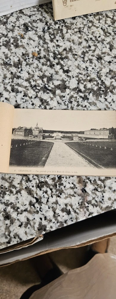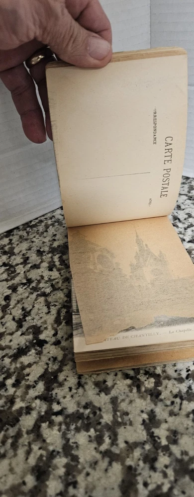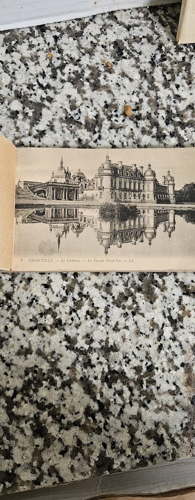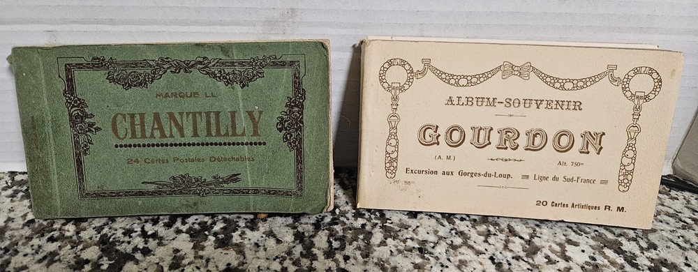 This product is a set of two antique French postcard booklets from the 1920s, featuring scenes from Chantilly and Gourdon. These collectible non-topographical postcards offer a glimpse into the past with their vintage charm and detailed designs. Perfect for history buffs or postcard enthusiasts, this set captures the essence of French culture and landmarks from the early 20th century.