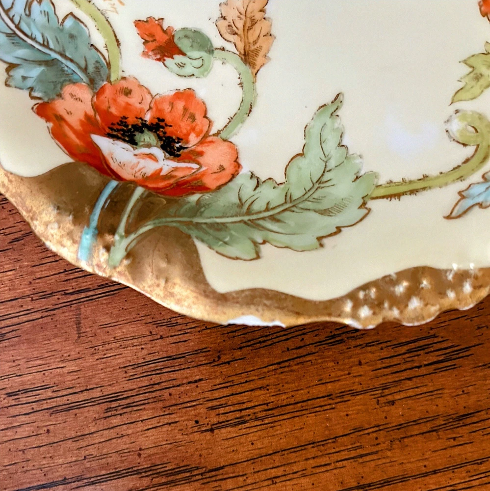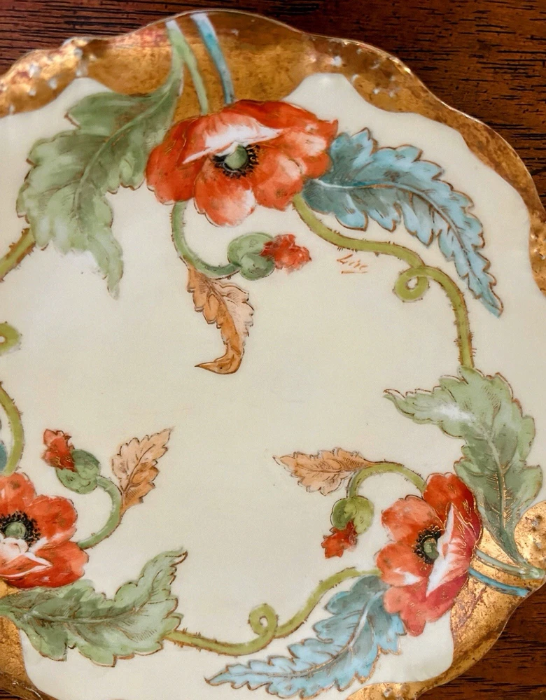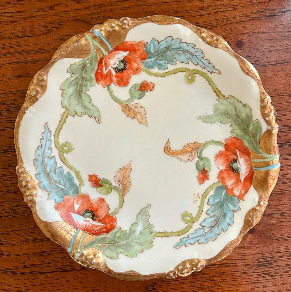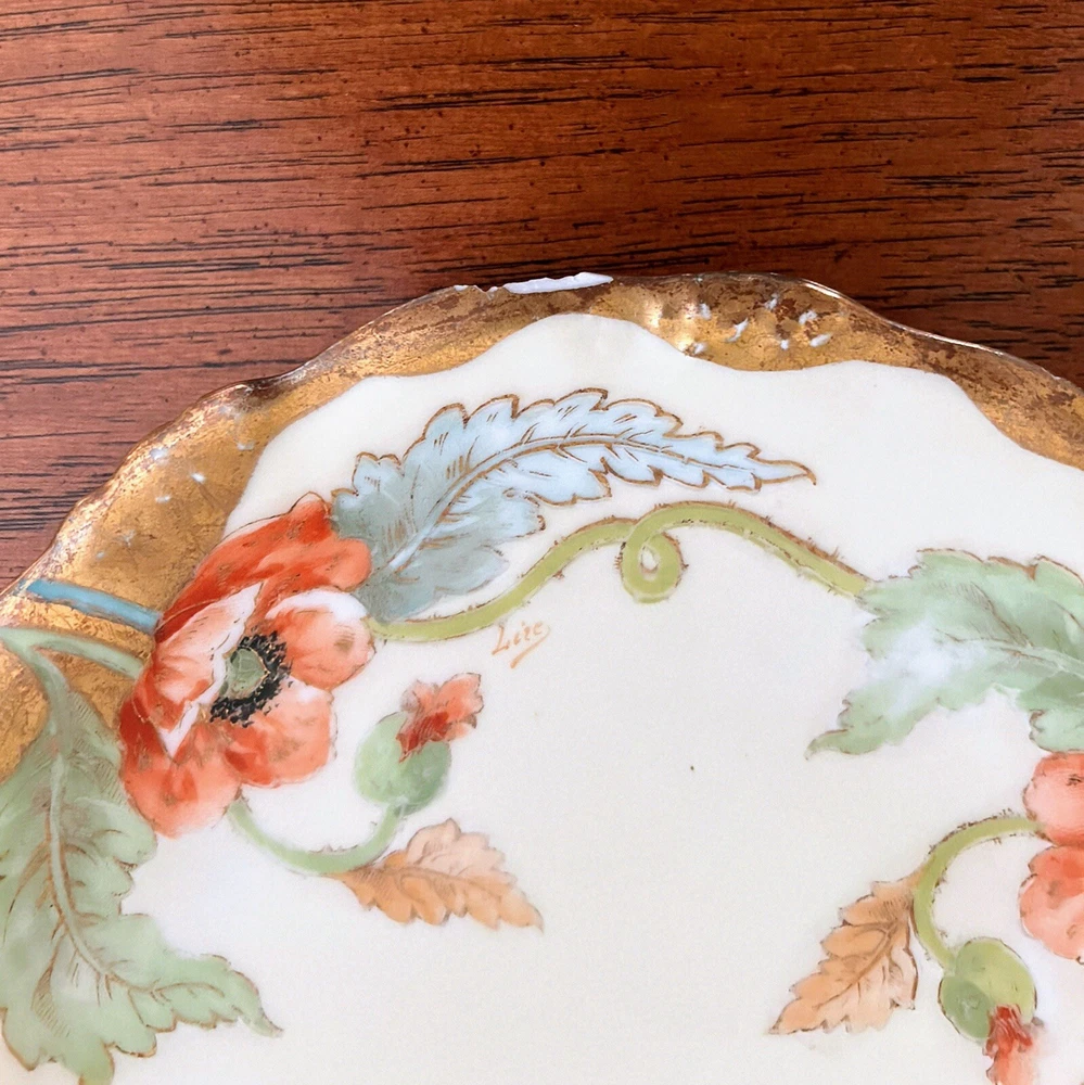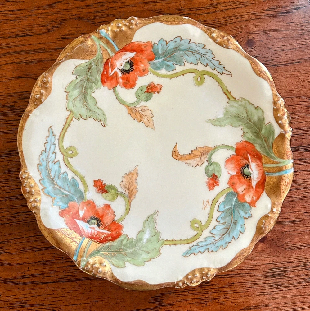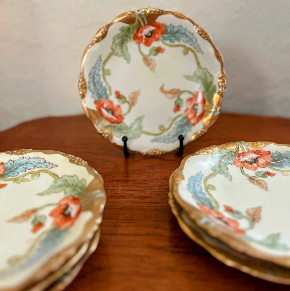 Antique Art Nouveau Limoges Plates - Gold Poppy - Antique Hand Painted