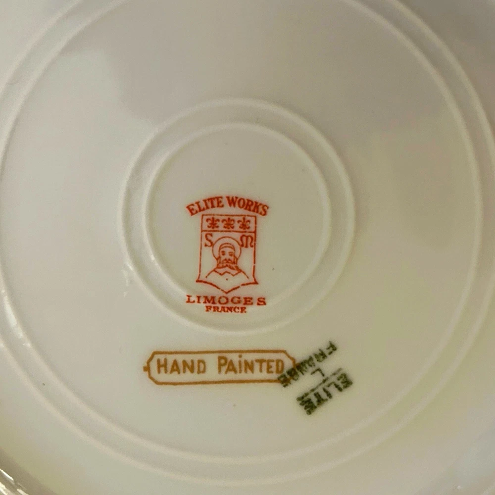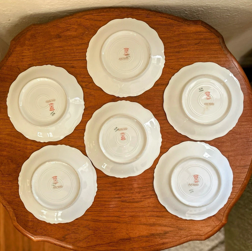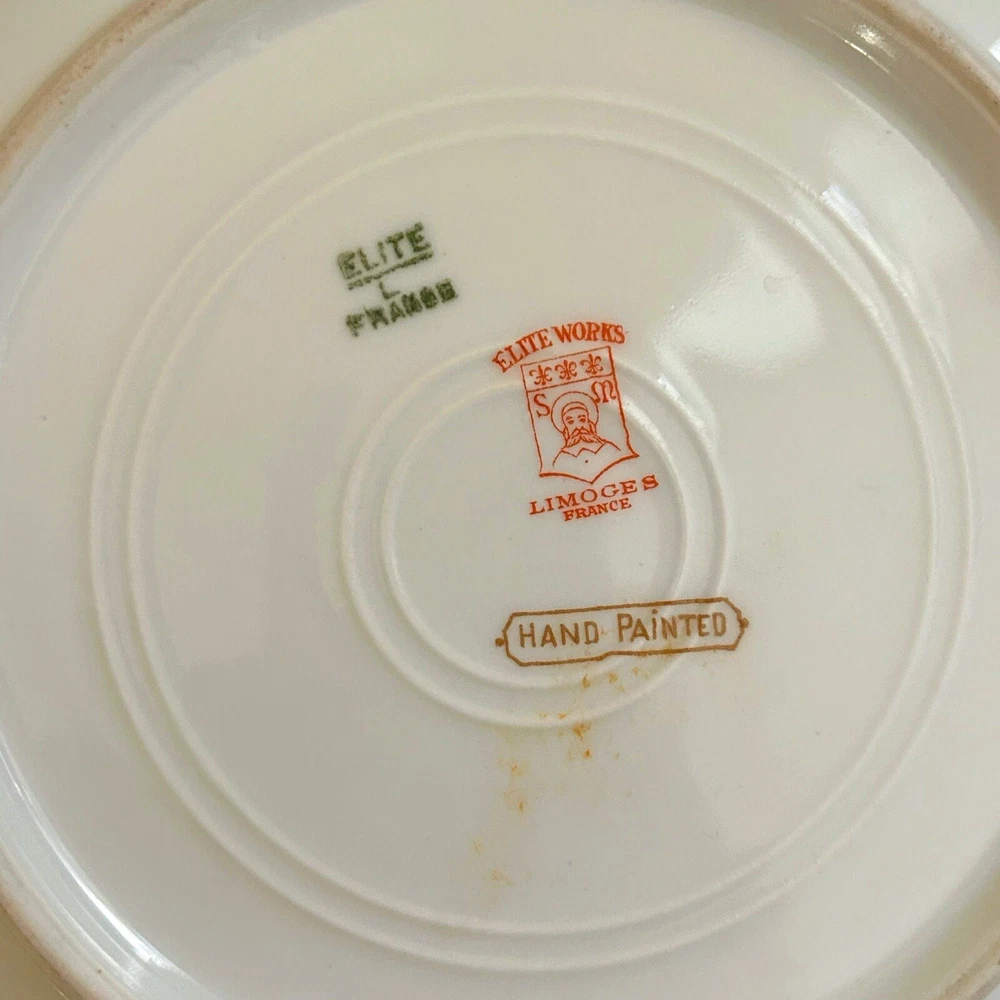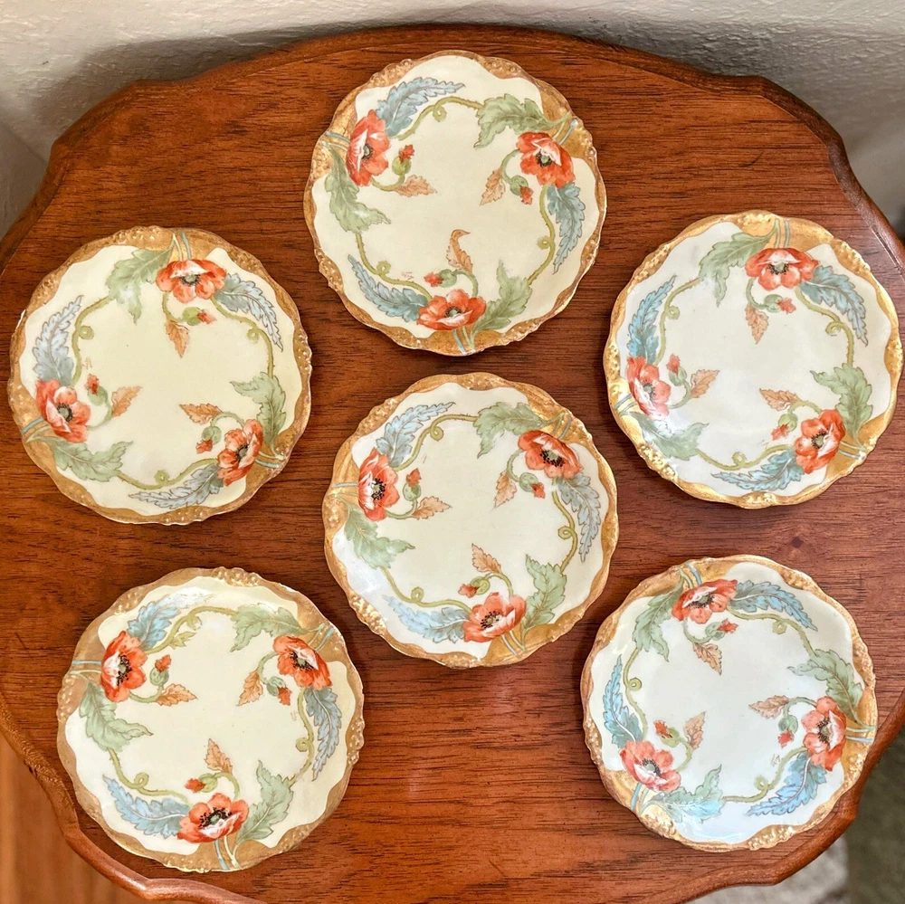 Care Instructions: Hand Wash Only Era: Early 20th Century (1911-1940) Vintage: Yes Plate Diameter: 7.25 Inches Brand: Limoges Year Manufactured: 1920 Set Includes: Plate Finish: Matte Handmade: Yes Production Technique: Studio Crafted Type: Decorative Plate Theme: Flower Backstamp: Printed Country/Region of Manufacture: France Original/Licensed Reproduction: Original Shape: Round Antique: Yes Pattern: Floral Time Period Manufactured: 1920-1929 Style: Art Nouveau Features: Decorative, Hand Painted, Limited Edition Number of Items in Set: Six-Piece Material: Bone China, Ceramic, Porcelain Color: Multicolor