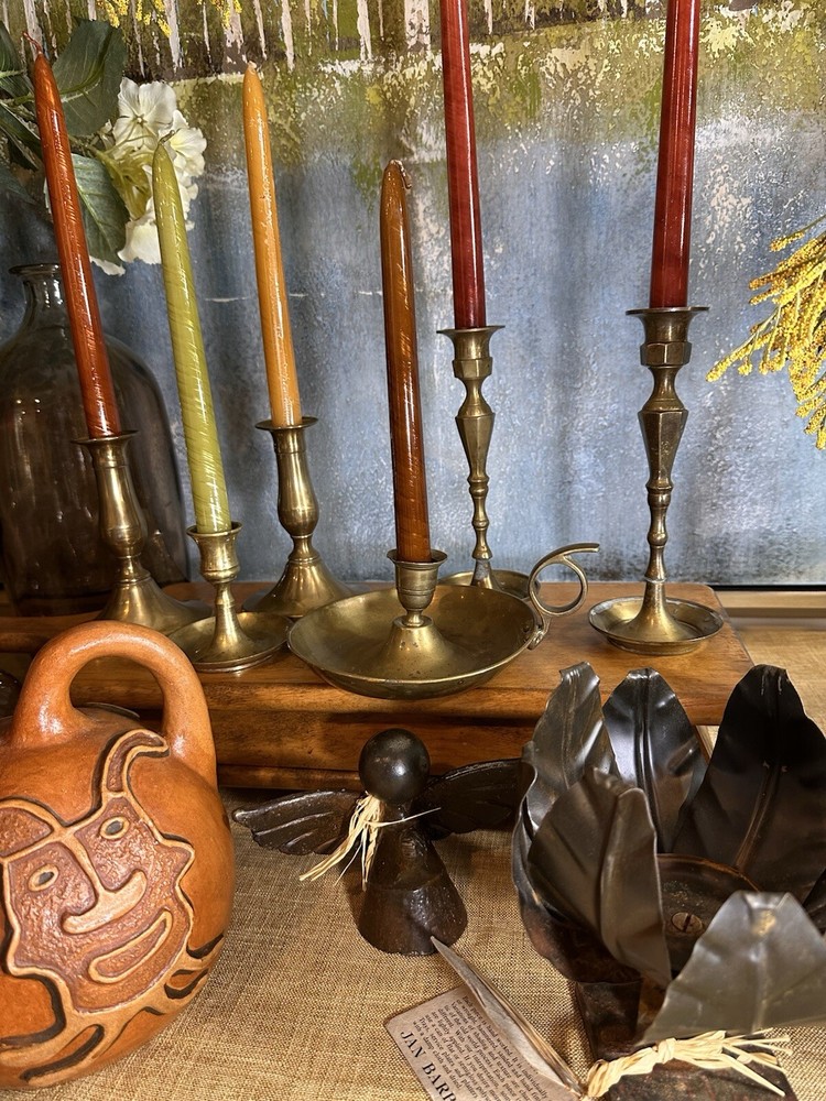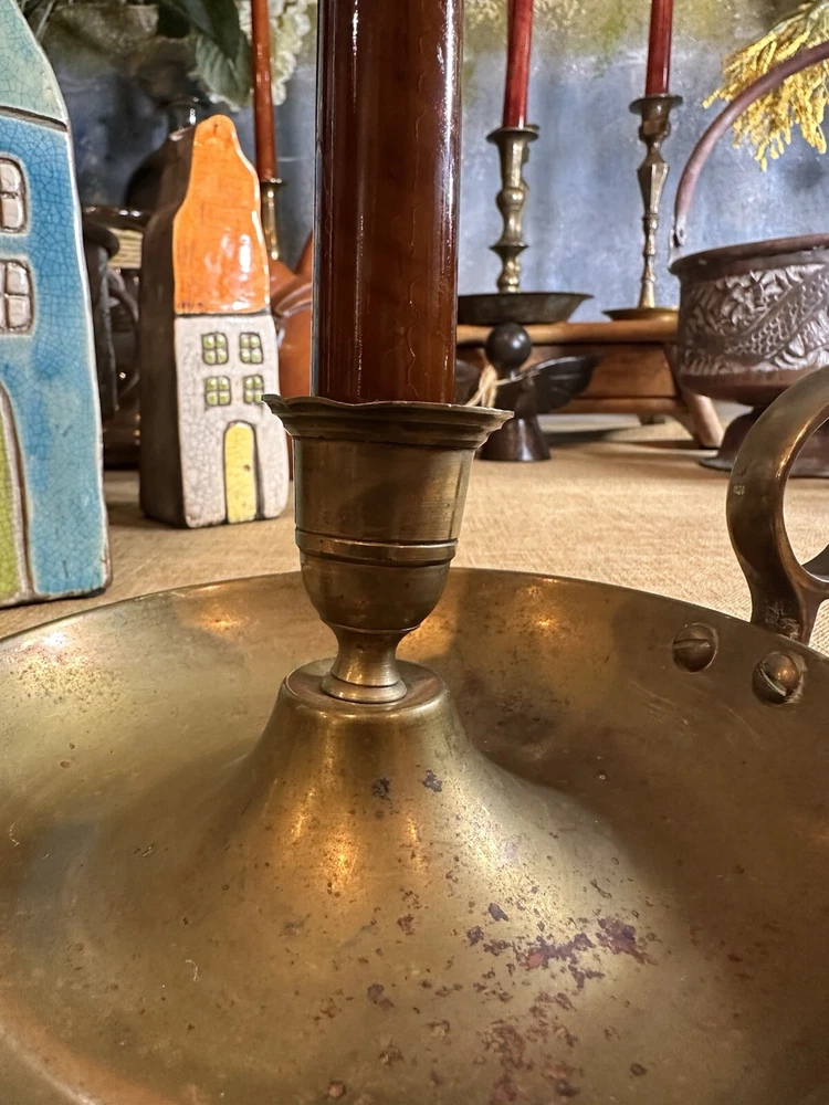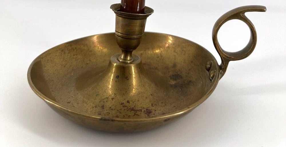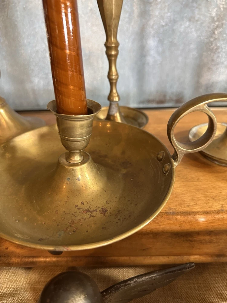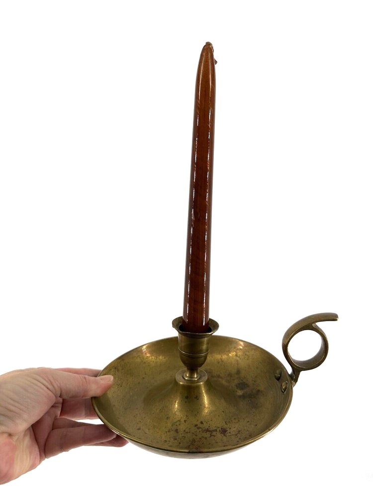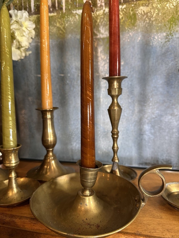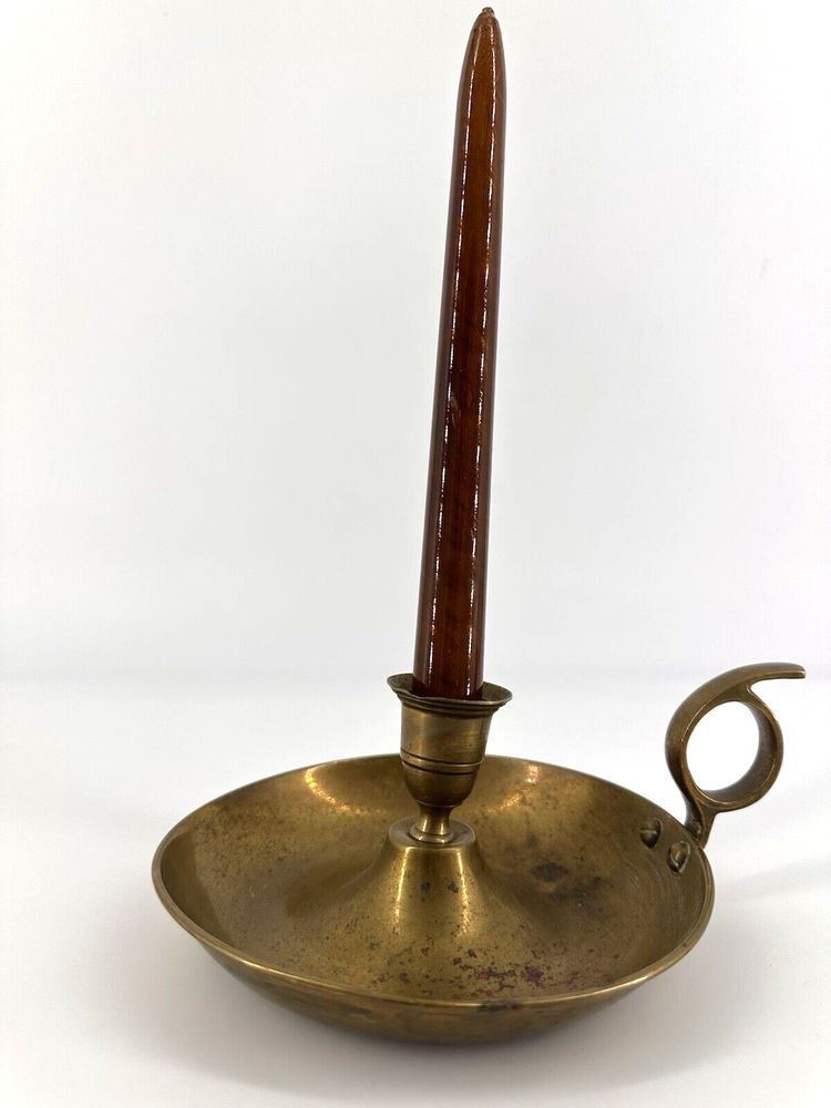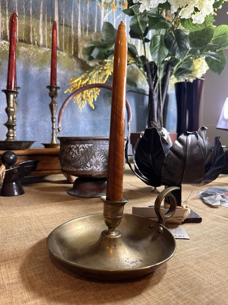 Add a touch of colonial elegance to any room with this vintage brass candle holder. Crafted in the mid-20th century, this round-shaped candle holder is suitable for all occasions and fits a 6-inch taper candle. The polished brass finish gives it a lustrous gold color, and the handle makes it easy to hold and move around. This handmade candle holder is perfect for anyone who loves decorative collectibles and wants to add a touch of period style to their home. It comes with a finger loop and drip tray, making it easy to use and clean with brass cleaner. This item is listed by YouBeYou LLC and is a great addition to any collection of candlestick holders. You may see the stem is a little off centered, but this just adds the charm to the piece. It is medium sized and I have not used brass cleaner on this piece as many of my customers want the patina left on. (Once taken off -- it takes many years to get it back. :)) It is in good vintage condition. You will receive one candle holder that is in the pictures. All other items within the pictures are those items that will be listed on m Ebay shop either this week or next --- so, you will get a sneak peak of what is coming up next! My shop: YouBeYou LLC ) If you have any questions even after you have purchased the item --- I am here for you to answer any questions that you may have! I strive to work diligently with every buyer to ensure they are a satisfied buyer, so please contact me anytime. This is a pre-owned item and I take great care to accurately describe the item but please see the pictures for full details. While we do our best to list every item in detail, these are vintage and pre-owned items, and some flaws are to be expected. Please see all photos/ video as they are a large part of the description of our items. Items come from a smoke-free environment. Each item is described in accurate detail with multiple measurements and various photos at different angles front and back, side to side, top and bottom. I have additional similar items that I have yet to list that you may be interested in. Feel free to follow my store ( YouBeYou LLC ) to see those when posted. Please see all photos/ video as they are a large part of the description of our items. I strive to make every purchase a pleasant experience. Please feel confidence in you purchase that I'll make every effort to correct any issues that may arise. If used, there are always some signs of wear -- well, because it is used, vintage, or antique. Most items are used -- Each item is inspected for quality. It is very important to us that you have a happy Ebay experience! Thank you for supporting a small business like ours! (Note: pictures may include measurements, and some have a video.)