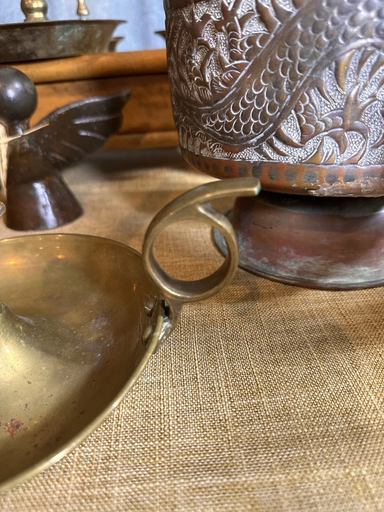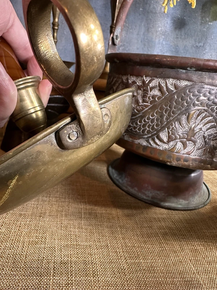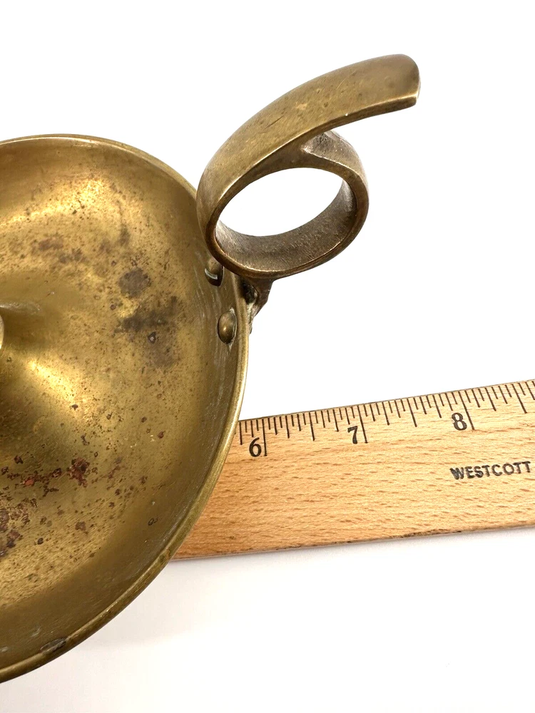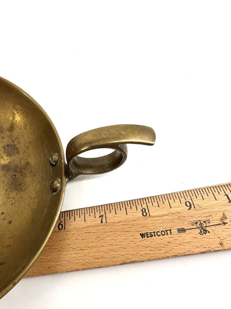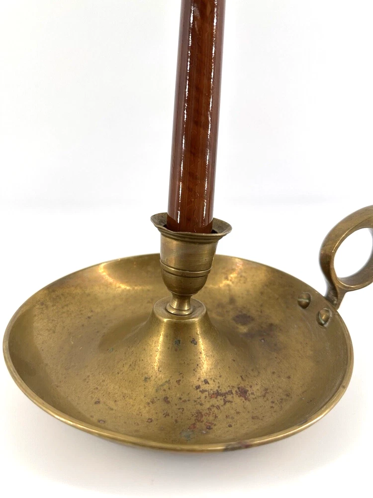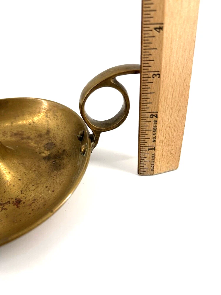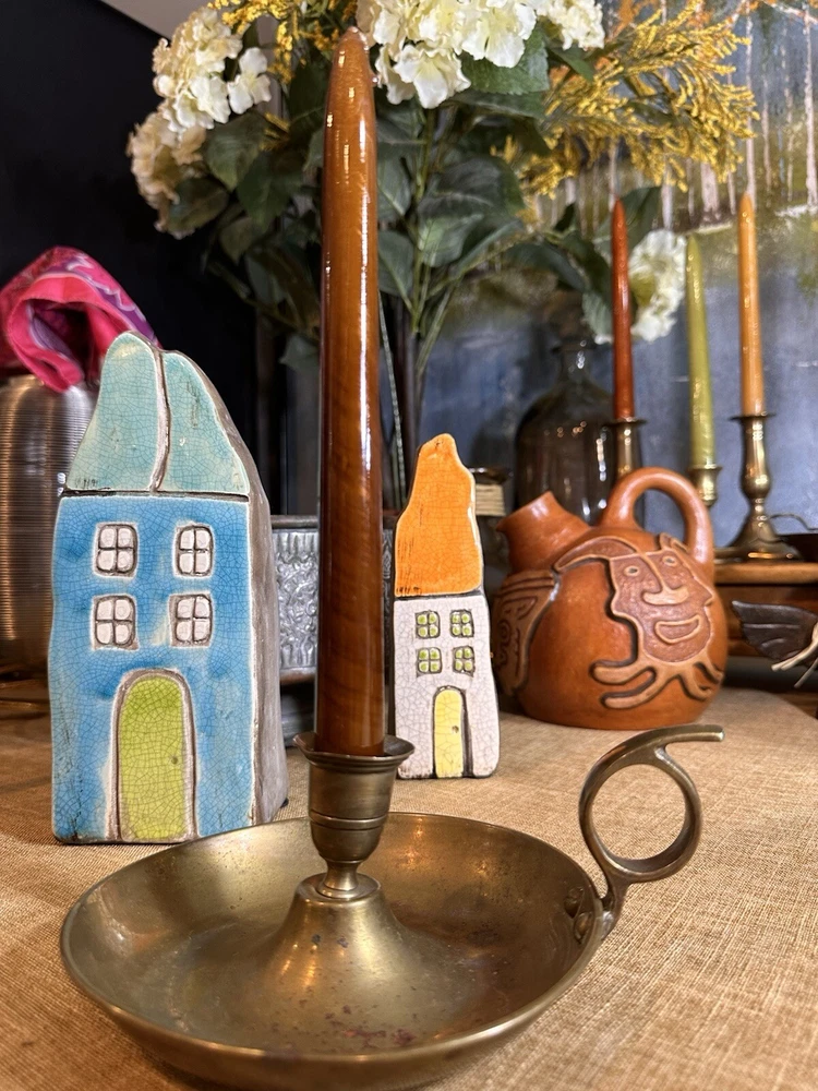 Add a touch of colonial elegance to any room with this vintage brass candle holder. Crafted in the mid-20th century, this round-shaped candle holder is suitable for all occasions and fits a 6-inch taper candle. The polished brass finish gives it a lustrous gold color, and the handle makes it easy to hold and move around. This handmade candle holder is perfect for anyone who loves decorative collectibles and wants to add a touch of period style to their home. It comes with a finger loop and drip tray, making it easy to use and clean with brass cleaner. This item is listed by YouBeYou LLC and is a great addition to any collection of candlestick holders. You may see the stem is a little off centered, but this just adds the charm to the piece. It is medium sized and I have not used brass cleaner on this piece as many of my customers want the patina left on. (Once taken off -- it takes many years to get it back. :)) It is in good vintage condition. You will receive one candle holder that is in the pictures. All other items within the pictures are those items that will be listed on m Ebay shop either this week or next --- so, you will get a sneak peak of what is coming up next! My shop: YouBeYou LLC ) If you have any questions even after you have purchased the item --- I am here for you to answer any questions that you may have! I strive to work diligently with every buyer to ensure they are a satisfied buyer, so please contact me anytime. This is a pre-owned item and I take great care to accurately describe the item but please see the pictures for full details. While we do our best to list every item in detail, these are vintage and pre-owned items, and some flaws are to be expected. Please see all photos/ video as they are a large part of the description of our items. Items come from a smoke-free environment. Each item is described in accurate detail with multiple measurements and various photos at different angles front and back, side to side, top and bottom. I have additional similar items that I have yet to list that you may be interested in. Feel free to follow my store ( YouBeYou LLC ) to see those when posted. Please see all photos/ video as they are a large part of the description of our items. I strive to make every purchase a pleasant experience. Please feel confidence in you purchase that I'll make every effort to correct any issues that may arise. If used, there are always some signs of wear -- well, because it is used, vintage, or antique. Most items are used -- Each item is inspected for quality. It is very important to us that you have a happy Ebay experience! Thank you for supporting a small business like ours! (Note: pictures may include measurements, and some have a video.)