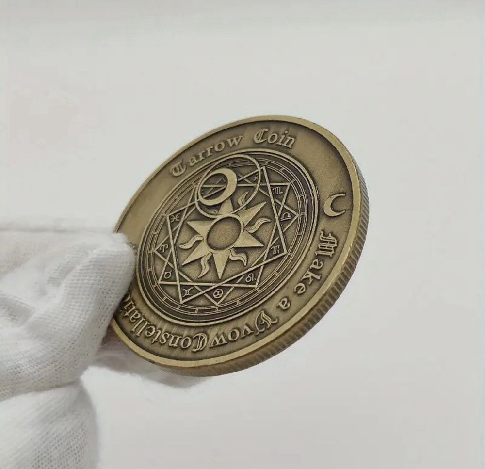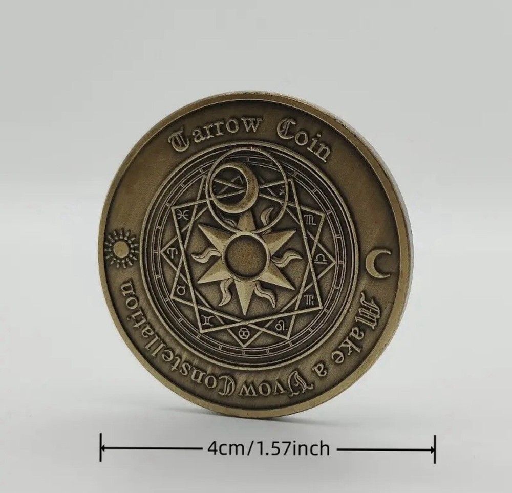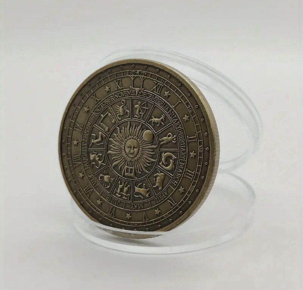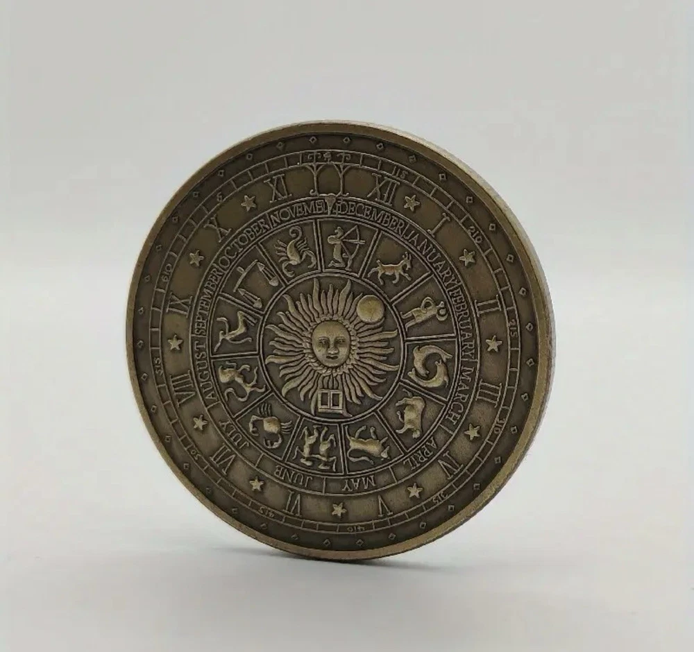 Antique Bronze Challenge Coin Featuring Tarot Signs, Sun, and Moon - Perfect for Collectors and Enthusiasts of Ancient Artifacts
