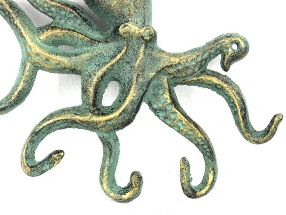 This antique bronze cast iron octopus hook 11is the perfect addition for any nautical themed home. Handcrafted from cast iron, these antique bronze hook allow for easy decorative mounting, ideal for hanging accessories. Display this decorative piece to add a nautical theme to any room and show those who visit your home your Affinity for the nautical Sea-Faring lifestyle. Functional hook for clothing or Accessories classic vintage rustic appearance Solid and heavy handcrafted from cast iron Note mounting hardware not included for all our products over 3000 unique nautical items available Buy factory direct all items designed and manufactured by us