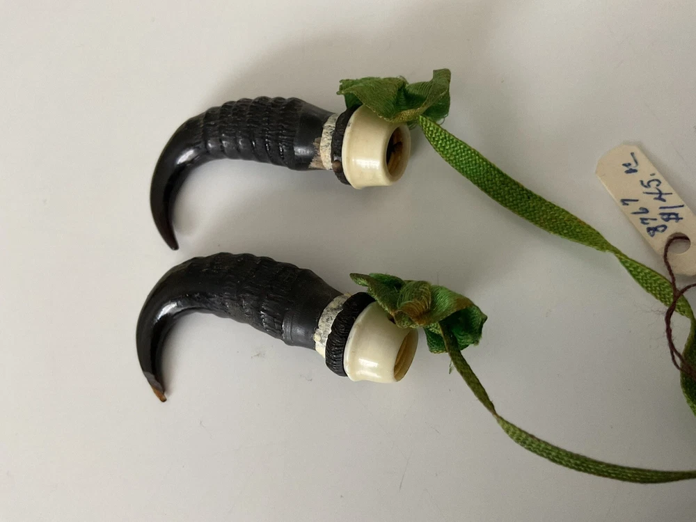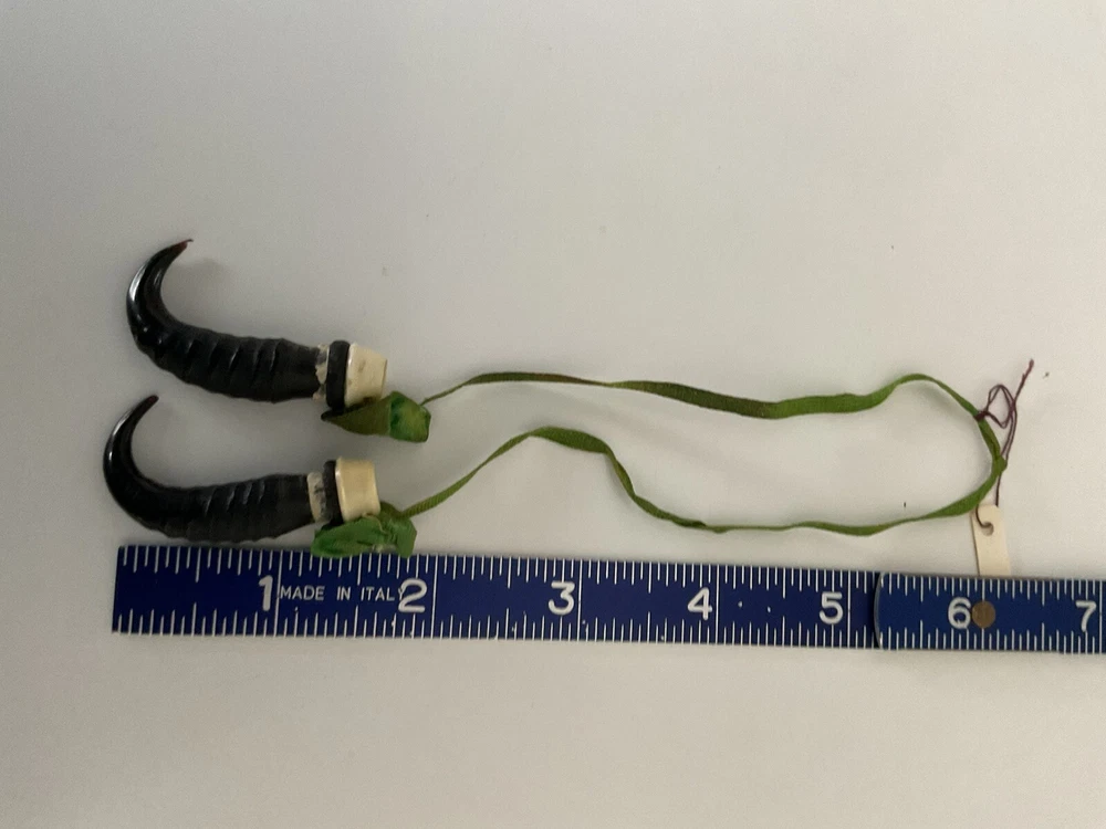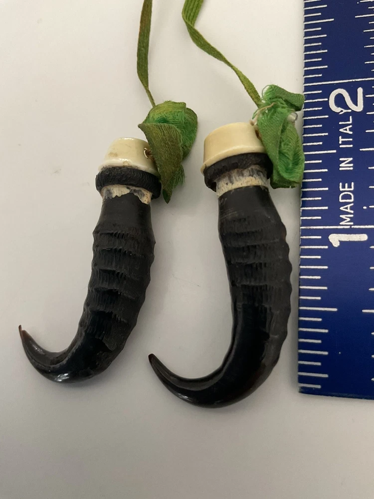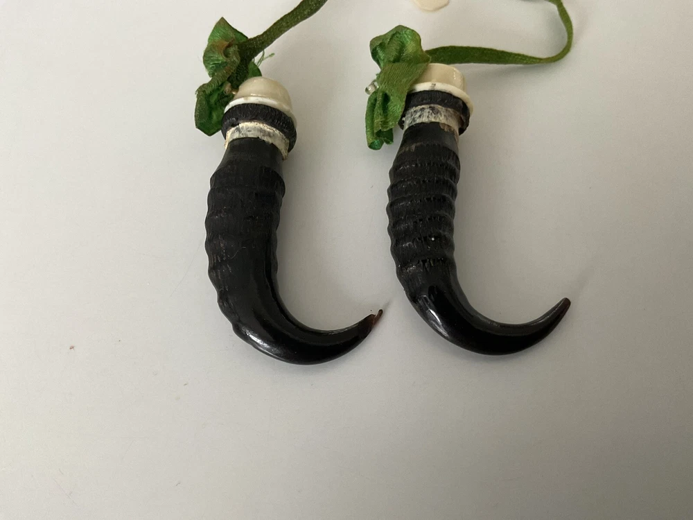 This antique carved figure is a unique addition to any collection. The horn-shaped knitting needle guards are a great accessory for any knitting enthusiast. The hooked horn design adds a touch of vintage charm to your knitting projects. Perfect for those who love to add a personal touch to their crafts. The needle guards are perfect for keeping your knitting needles organized and safe when not in use. I came across these while cleaning out some of my Mom’s things and had no idea what they were. I found similar on eBay so I guess that’s what they are. I have no idea what they are made of. There is a price tag that was on the string $145. View all the photos for they are the description. Pointed out one of the hooks is chipped on the end. Thanks for looking!