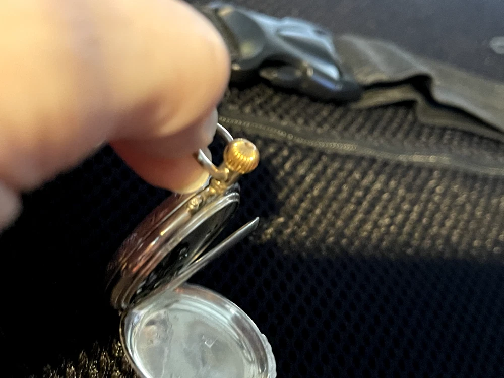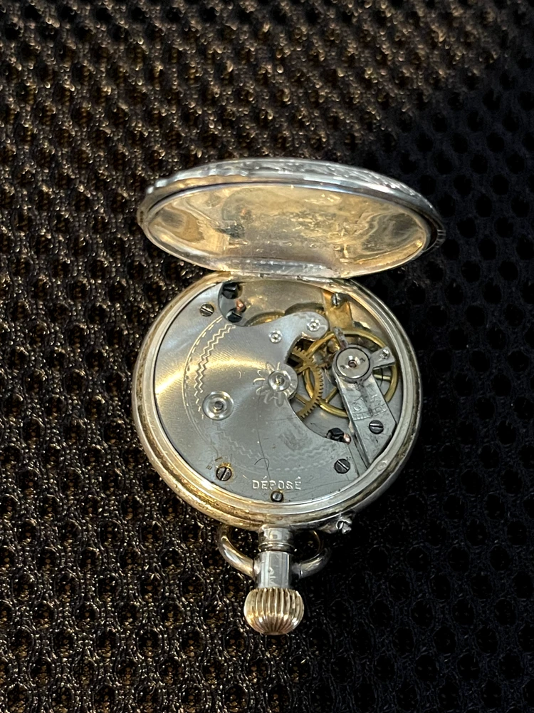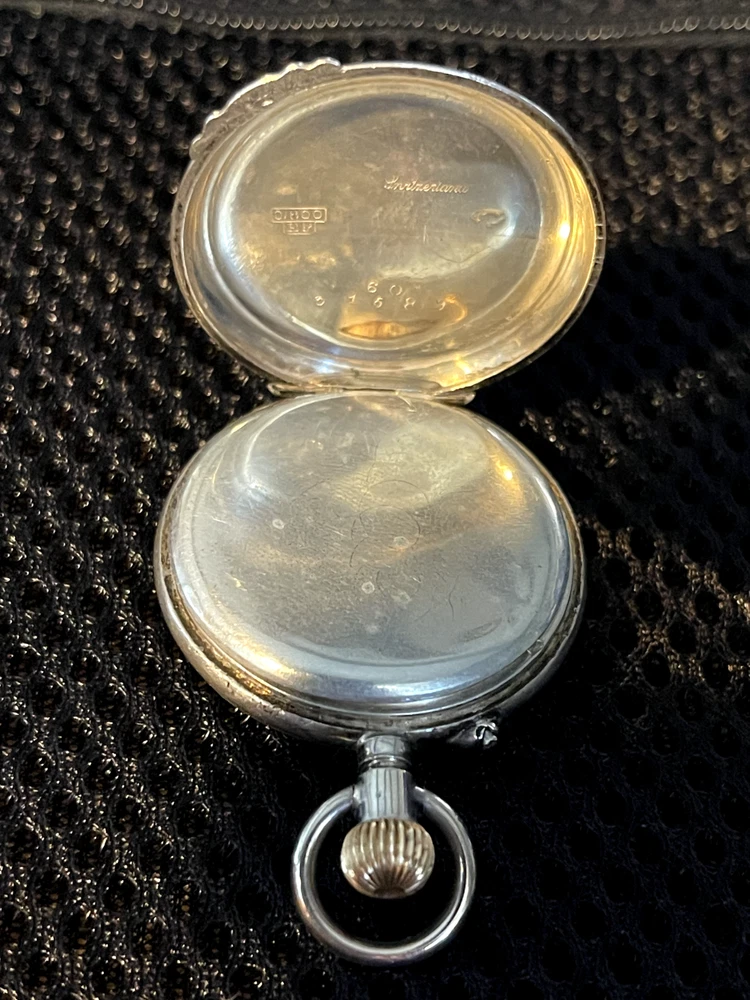 Gorgeous ladies open face pocket watch. It is unbranded (as far as I am willing to probe) it is 800 silver and made in Switzerland. This is a lever set watch with a porcelain enamel face. It is not running, I have had it in a jewelry box of a long time. It was always closed but some dust and humidity obviously is hindering it. Please ask any questions before bidding. I accept any reasonable offers and will combine shipping with multiple purchases.