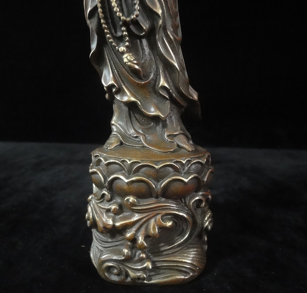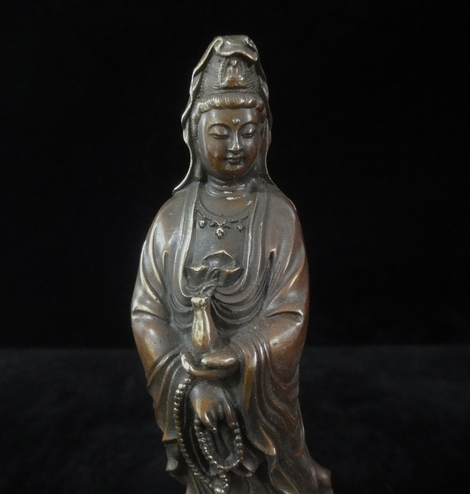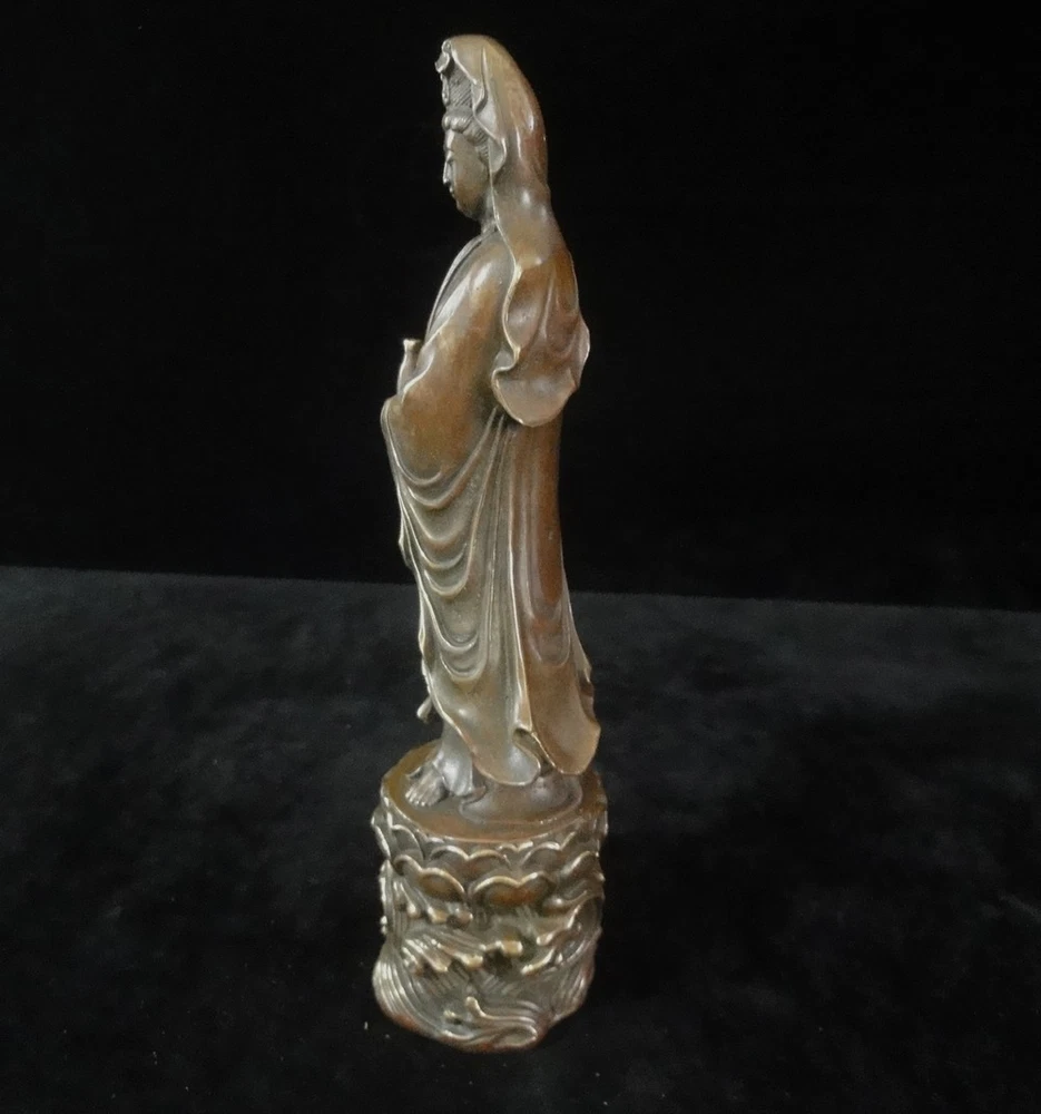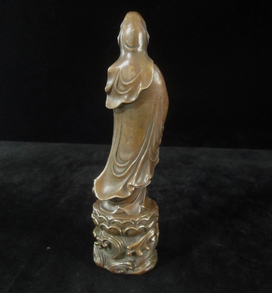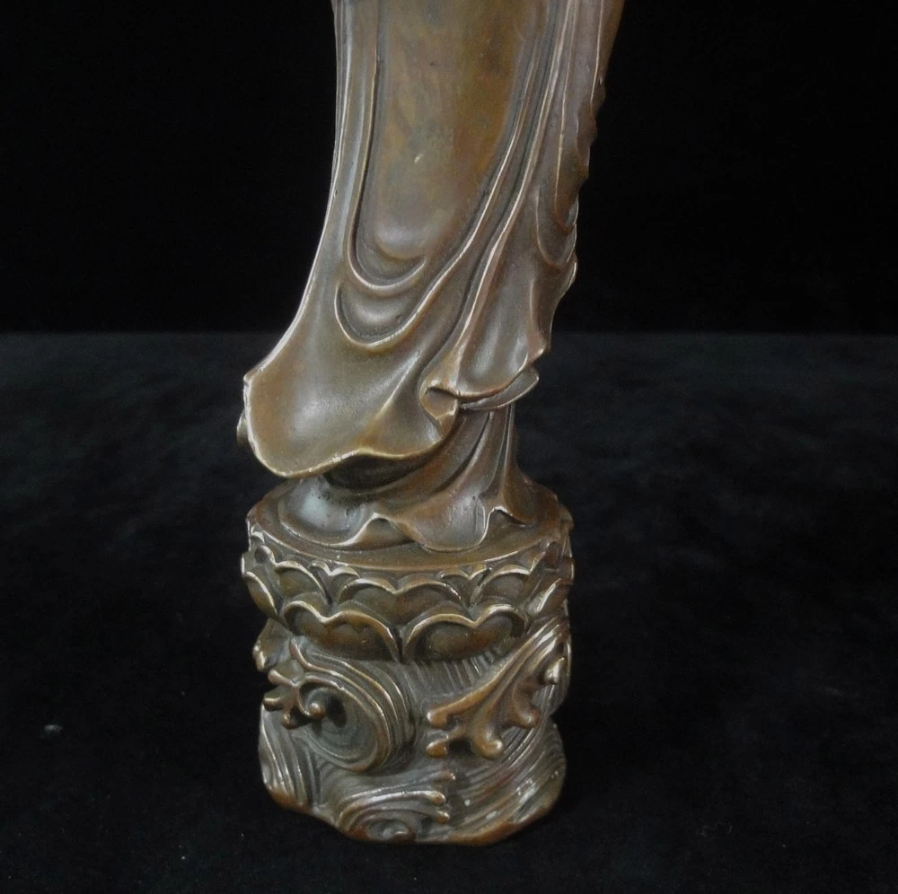 This item will be shipped from New York by USPS and free shipping cost for the all US buyers,please click here to see the size and more photos. Home New Arrival All Items End Soon Add to Favs Store Categories All items Vases Statues Bangles Pendants Paintings Ink Stones Bowls Cups Plates Censers Old Chinese Bronze "GuanYin" Buddha Holding Bottle Figurine Statue "QianLong" [Net Weight:1.43LB (0.65kg)]; [Height:8.08" (20.5cm)]; [Bottom Width:2.17" (5.5cm)]; A very fine Chinese old bronze Statue who is called "GuanYin" in Chinese,she is standing on the lotus base and one hand holding a bottle,marked four characters "Qian Long Nian Zhi " on the bottom, it is very worth to collecting! You will get this statue as the same as the one in the photos,please look at the photos carefully for more details before you buy it,thank you! Categories: All Items Vases Bangles Pendants Ink Stones Bowls Cups Plates Statues Brush Pots Brush Washers Teapots Censers Paintings Calligraphies Pictures: Shipping Payment Return About Us Feedbacks Shipping Item(s) will be shipped in 1-2 business days by USPS,if you want me ship it to you by other ways,please contact me. Tracking numbers will be updated to ebay when item is shipped. If you do not see a tracking number within 3 business days please contact me. I will combine the shipping cost in a discount to save the money for multi-items you buy in one day,please contact me before you purchase the items you want,thank you! Payment Accept eBay payment way! We only ship to confirmed ebay addresses. When you make payment,please confirm it.Thank you! Return 30 days money back or item exchange, seller pays return shipping; ebay Money Back Guarantee: Get the item you ordered in the same condition or get your money back. Covers your purchase price and original shipping. About Us I'm a serious seller in US,if you're not satisfied with your items,please contact me here,I will answer you in 24 hours,thank you! Feedbacks If you like my items,please leave me 5 star feedbacks. please contact me first before you leave Neutral or Negative feedback. I will do my best to solve the problem for you,thanks! Listing and template services provided by inkFrog