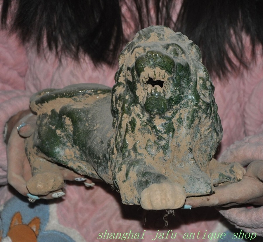 Theme: wealth animal Lion statue sculpture Region of Origin: China Primary Material: Green glazed porcelain Animal Type: wealth animal Lion statue sculpture Seller Notes: “12.6" Old China dynasty Green glazed porcelain wealth animal Lion statue sculpture”