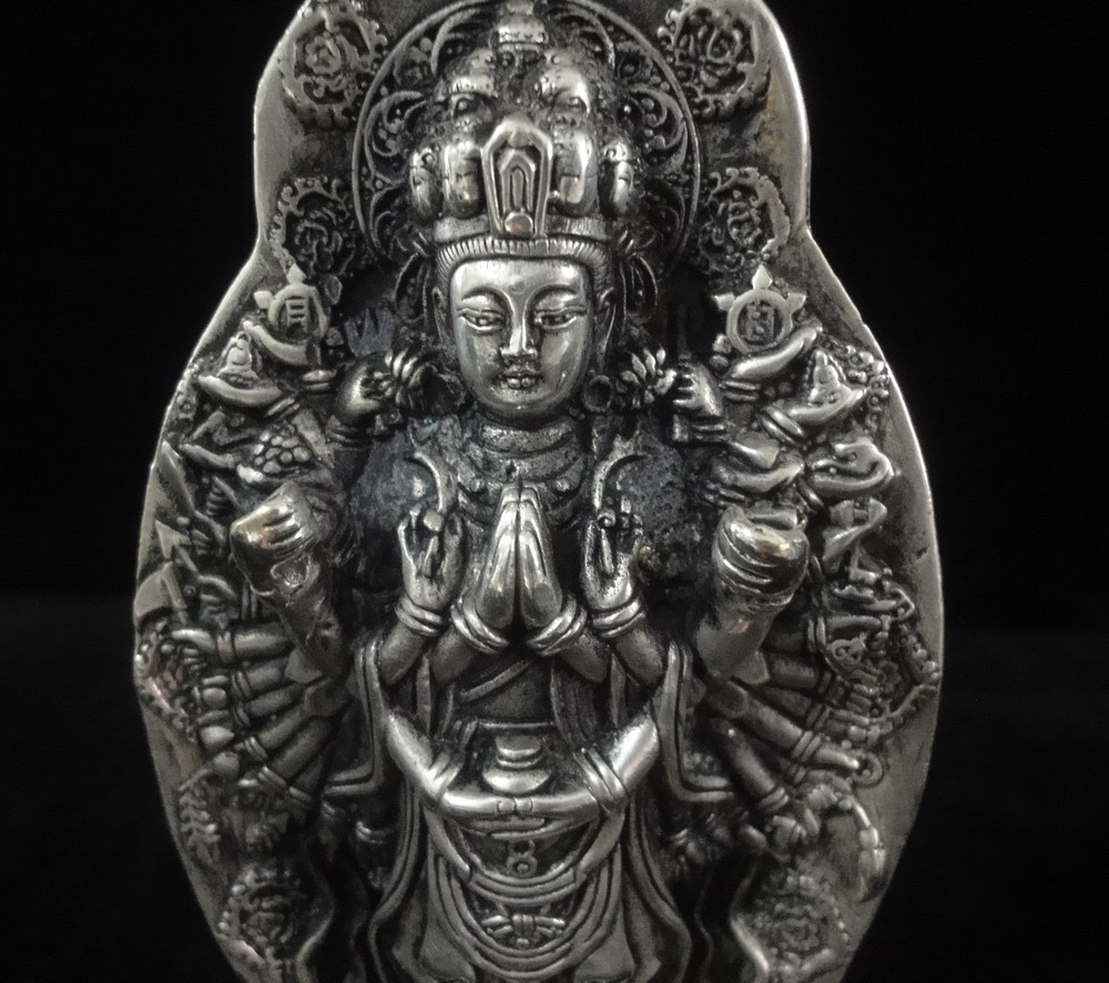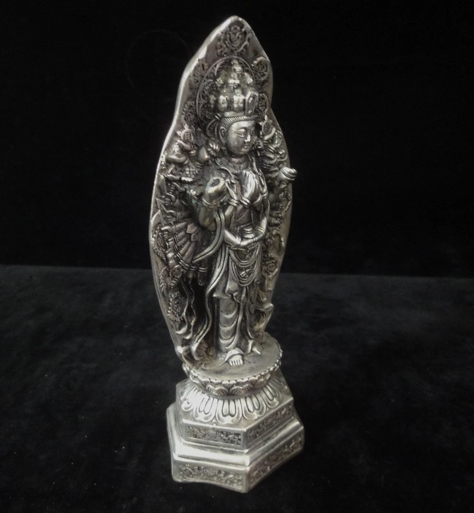 Antique Chinese Silver Bronze Thousand-Hand GuanYin Buddha Statue QianLong Era