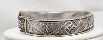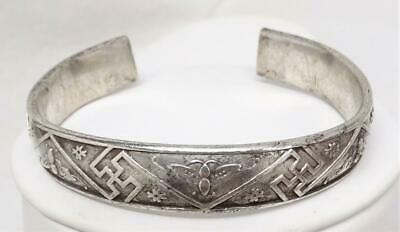From a collection an antique Chinese silver hand chased split bracelet. Signed, photos. Finely detailed. Great condition. Band is thick & not flexible. Measures ½” wide, interior diameter 2 3/8” x 2 1/8”, opening 1 1/8”, weighs 53.6 grams. Antique Chinese Silver Hand Chased Split Bracelet 53.6g Signed Antique Chinese Silver Hand Chased Split Bracelet 53.6g Signed Click images to enlarge Description From a collection an antique Chinese silver hand chased split bracelet. Signed, photos. Finely detailed. Great condition. Band is thick & not flexible. Measures ½” wide, interior diameter 2 3/8” x 2 1/8”, opening 1 1/8”, weighs 53.6 grams. Payment PAYMENT VIA PAYPAL IS DUE WITHIN THREE DAYS OF PURCHASE. Shipping CONTINENTAL USA SHIPPING $10.00 is by USPS. Items are insured by Shipsurance and evidence of insurance will not appear on package. On purchases over $300.00 USPS PRIORITY MAIL is required. I will gladly combine items. INTERNATIONAL SHIPPING COSTS will be determined by location. I ship by USPS & will provide buyers with shipping costs by USPS FIRST CLASS INTERNATIONAL MAIL. On purchases over $300.00 USPS PRIORITY MAIL INTERNATIONAL is required. All items are insured. I am happy to combine shipping. ALSO TO INTERNATIONAL BUYERS, I AM NOT RESPONSIBLE FOR CUSTOMS FEES!! PLEASE DON'T ASK ME TO REDUCE STATED VALUE ON CUSTOMS FORMS!!! Terms of Sale ALL SALES ARE FINAL UNLESS I HAVE MISREPRESENTED THE ITEM. I MAKE EVERY EFFORT TO PROVIDE DETAILED, ACCURATE DESCRIPTIONS & PHOTOS OF ALL ITEMS, AND ENCOURAGE BUYERS TO ASK SPECIFIC QUESTIONS. PLEASE BE AWARE THAT THE VAST MAJORITY OF MY PIECES ARE VINTAGE & ANTIQUE, AND CONSEQUENTLY NOT IN NEW CONDITION. About Us I've been collecting vintage & antique jewelry as well as eclectic bric a brac all my life. I love combing through estate sales, flea markets & antique shows for treasure. Now I'm slowly going through it & offering pieces for sale. I make every effort to describe my items in great detail and provide many photos. Please remember that my pieces are vintage & antique, and consequently are not in new condition. I'm always happy to answer specific questions. Contact Us PLEASE FEEL FREE TO CONTACT ME WITH QUESTIONS, I WILL USUALLY RESPOND THE SAME DAY. Get images that make Supersized seem small. Showcase your items with Auctiva's Listing Templates! THE simple solution for eBay sellers. Track Page Views With Auctiva's FREE Counter