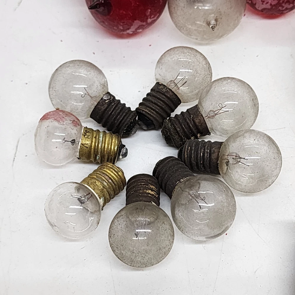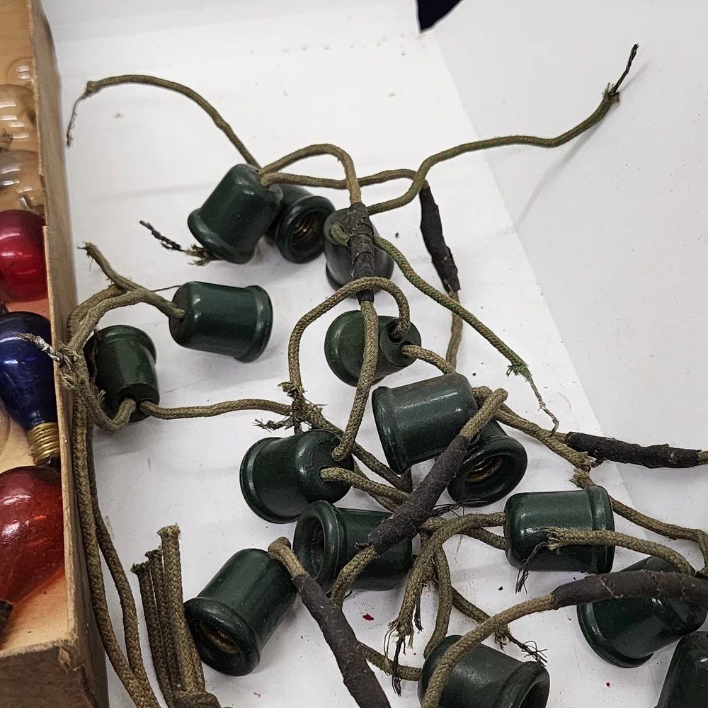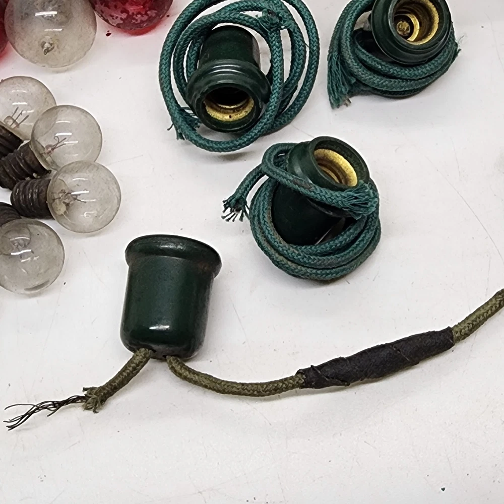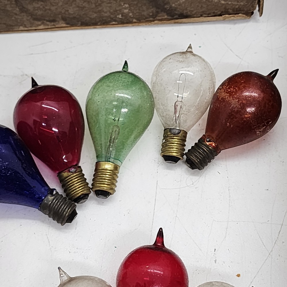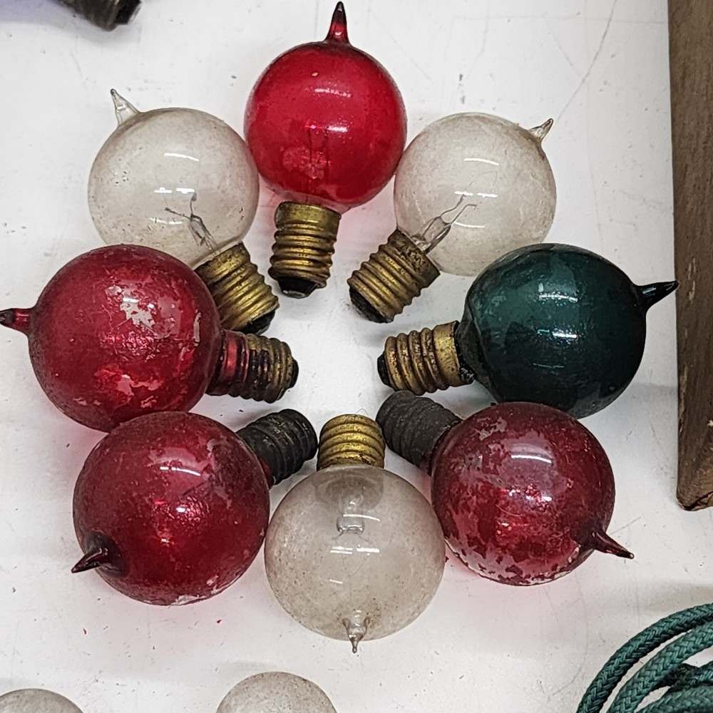 Welcome to Strack's Antiques Up for your consideration: .....PLEASE READ THE ENTIRE DESCRIPTION TO SEE WHAT YOU ARE BIDDING ON....THANK YOU...... This auction is for an assortment of Antique very early 1900s C6 CHRISTMAS LIGHTS, SOCKETS,PLUGS, & A FRANCO BATTERY. There is a combination of carbon exhaust tip light bulbs & little clear bulbs. ALL THESE BULBS WERE TESTED BEFORE WE LISTED THEM. We used a little battery to test them. The carbon exhaust tip bulbs include 20 that are working & 16 that are NOT working. There are also 9 little clear bulbs which 8 work & 1 that does NOT work. (bulbs in open box in main picture are the nonworking). ALSO INCLUDED are 23 green sockets with green cloth covered cords. They are individual sockets. Some are connected together and some are not. 3 look like they were never used. There is also the main large wooden screw in plug and a c6 screw in plug. We are not sure how these were actually powered back when these were made. WE ALSO INCLUDED A FRANCO BATTERY THAT WAS IN THE SAME BOX AS ALL THIS STUFF SHOWN. SEE PICTURE OF BATTERY IN PICTURES. WE BELIEVE THAT BATTERY WAS THE POWER SOURCE FOR THE SMALLER ROUND CARBON EXHAUST TIP LIGHTS THAT CAME IN THE SMALL SQUARE BOX. What you see in the pictures is what you are getting. Thats how we bought these. Not sure if there is anything missing. There is also an empty cardboard box that says XMAS TREE LAMPS 6 VOLTS EMPIRE MINIATURE BASE. BOX HAS TAPED REPAIRS. Condidering the nature of all these items, they are being SOLD AS-IS. PLEASE LOOK AT THE PICTURES AS THEY ARE PART OF THE DESCRIPTION AND ALSO TO SEE WHAT YOU ARE BIDDING ON. CONDITIONS LISTED BELOW. Approx. Measurements ( Length x Width x Height ) = 12x12x12 Approx. Weight = 4lbs BID WITH CONFIDENCE -- WE HAVE BEEN SELLING SINCE 1999 Good AS-IS Condition.... AGE RELATED WEAR... Paint/color on bulbs is flaking on some, crazing on others. Best thing is...... See ALL THE Pictures & ALSO READ ENTIRE DESCRIPTION ABOVE. Shipping Terms for This Item: We offer combined shipping to domestic buyers who purchase multiple items. NOTE: No combined shipping for international buyers. If you would like for us to combine shipping for your order, please contact us for an invoice. Do not pay until you receive a combined invoice from us. Please note: Buyer will have to directly sign when item/items sells for $200 or more when delivered - per insurance policy rules.