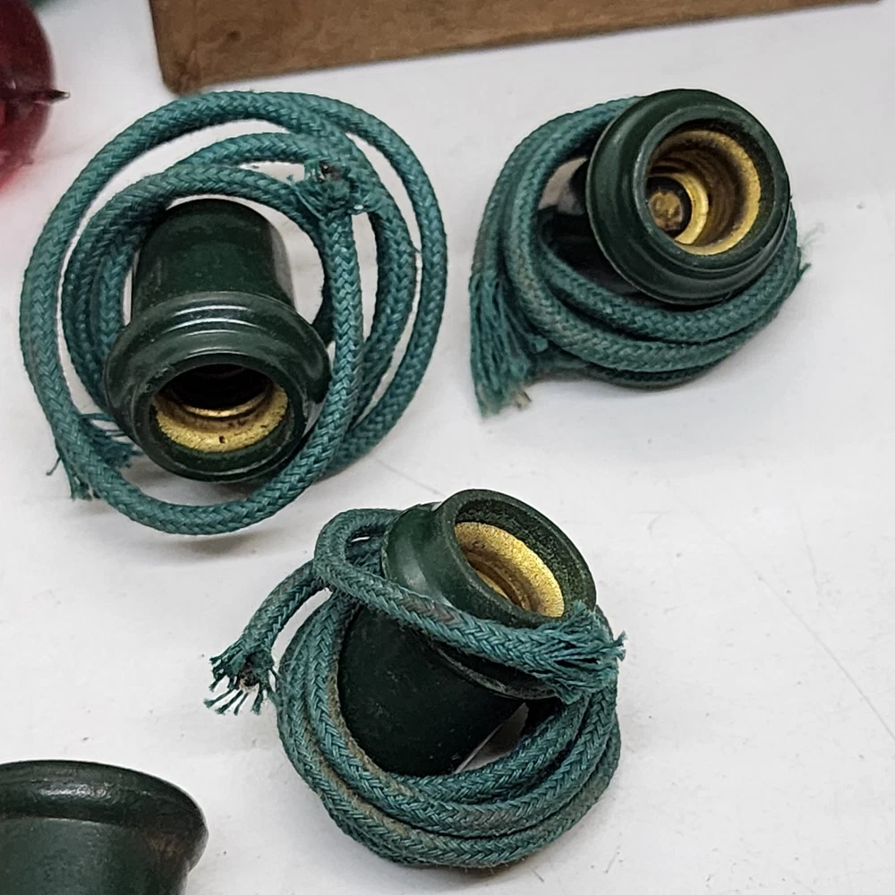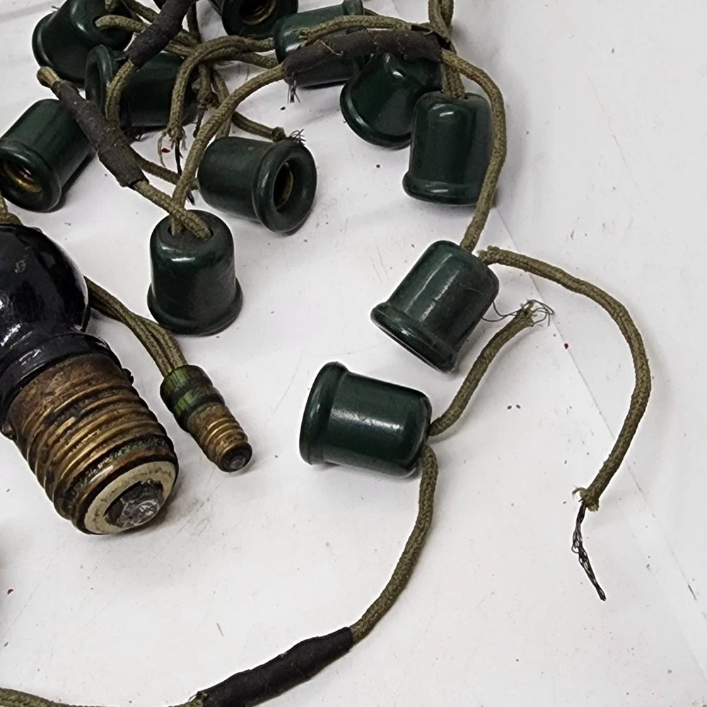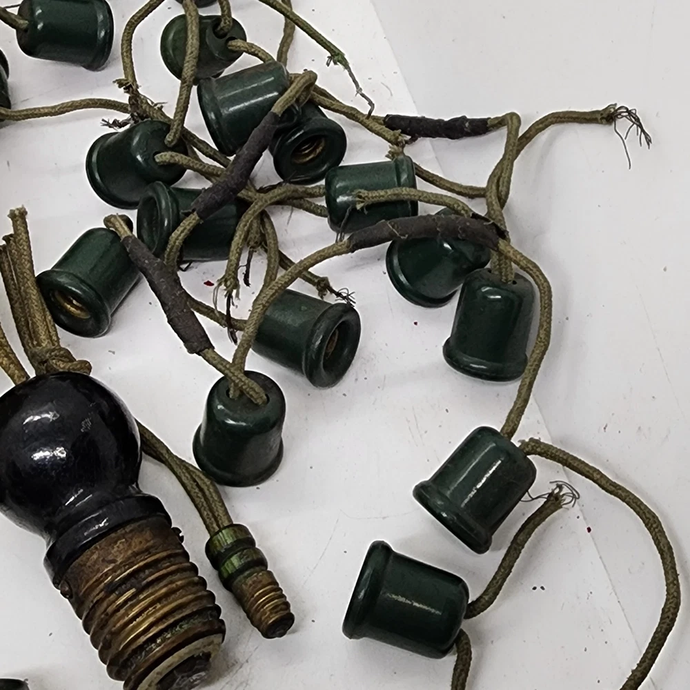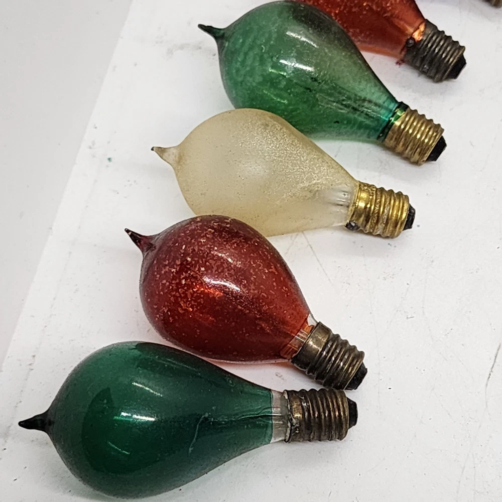 Welcome to Strack's Antiques Up for your consideration: .....PLEASE READ THE ENTIRE DESCRIPTION TO SEE WHAT YOU ARE BIDDING ON....THANK YOU...... This auction is for an assortment of Antique very early 1900s C6 CHRISTMAS LIGHTS, SOCKETS,PLUGS, & A FRANCO BATTERY. There is a combination of carbon exhaust tip light bulbs & little clear bulbs. ALL THESE BULBS WERE TESTED BEFORE WE LISTED THEM. We used a little battery to test them. The carbon exhaust tip bulbs include 20 that are working & 16 that are NOT working. There are also 9 little clear bulbs which 8 work & 1 that does NOT work. (bulbs in open box in main picture are the nonworking). ALSO INCLUDED are 23 green sockets with green cloth covered cords. They are individual sockets. Some are connected together and some are not. 3 look like they were never used. There is also the main large wooden screw in plug and a c6 screw in plug. We are not sure how these were actually powered back when these were made. WE ALSO INCLUDED A FRANCO BATTERY THAT WAS IN THE SAME BOX AS ALL THIS STUFF SHOWN. SEE PICTURE OF BATTERY IN PICTURES. WE BELIEVE THAT BATTERY WAS THE POWER SOURCE FOR THE SMALLER ROUND CARBON EXHAUST TIP LIGHTS THAT CAME IN THE SMALL SQUARE BOX. What you see in the pictures is what you are getting. Thats how we bought these. Not sure if there is anything missing. There is also an empty cardboard box that says XMAS TREE LAMPS 6 VOLTS EMPIRE MINIATURE BASE. BOX HAS TAPED REPAIRS. Condidering the nature of all these items, they are being SOLD AS-IS. PLEASE LOOK AT THE PICTURES AS THEY ARE PART OF THE DESCRIPTION AND ALSO TO SEE WHAT YOU ARE BIDDING ON. CONDITIONS LISTED BELOW. Approx. Measurements ( Length x Width x Height ) = 12x12x12 Approx. Weight = 4lbs BID WITH CONFIDENCE -- WE HAVE BEEN SELLING SINCE 1999 Good AS-IS Condition.... AGE RELATED WEAR... Paint/color on bulbs is flaking on some, crazing on others. Best thing is...... See ALL THE Pictures & ALSO READ ENTIRE DESCRIPTION ABOVE. Shipping Terms for This Item: We offer combined shipping to domestic buyers who purchase multiple items. NOTE: No combined shipping for international buyers. If you would like for us to combine shipping for your order, please contact us for an invoice. Do not pay until you receive a combined invoice from us. Please note: Buyer will have to directly sign when item/items sells for $200 or more when delivered - per insurance policy rules.