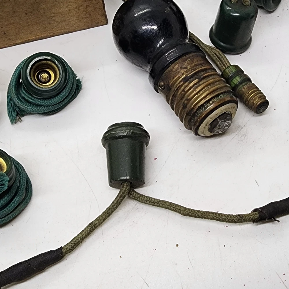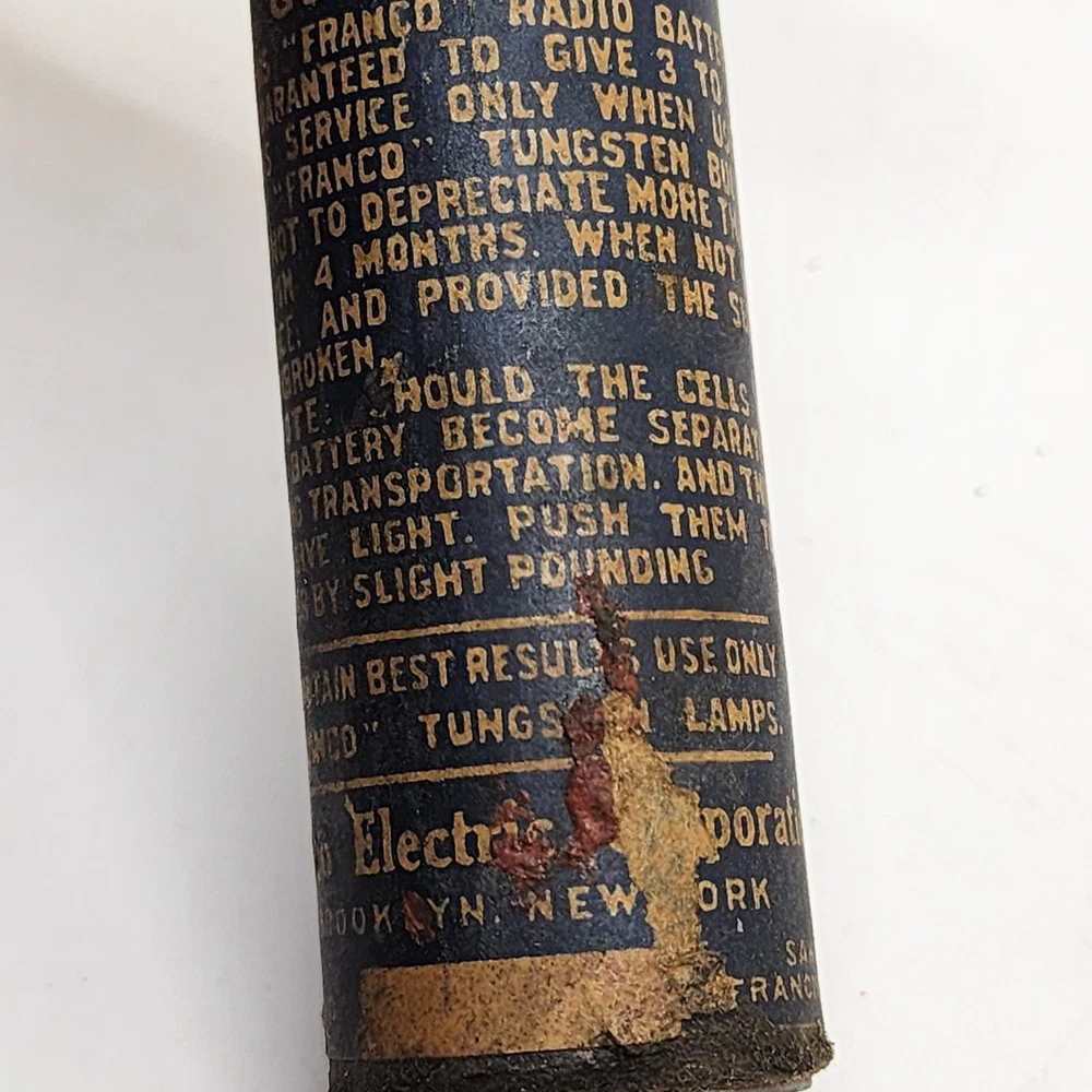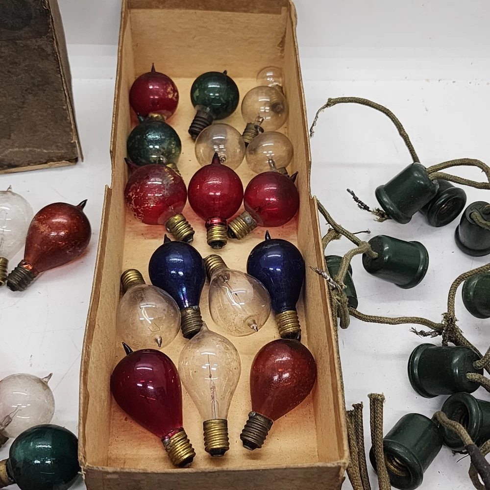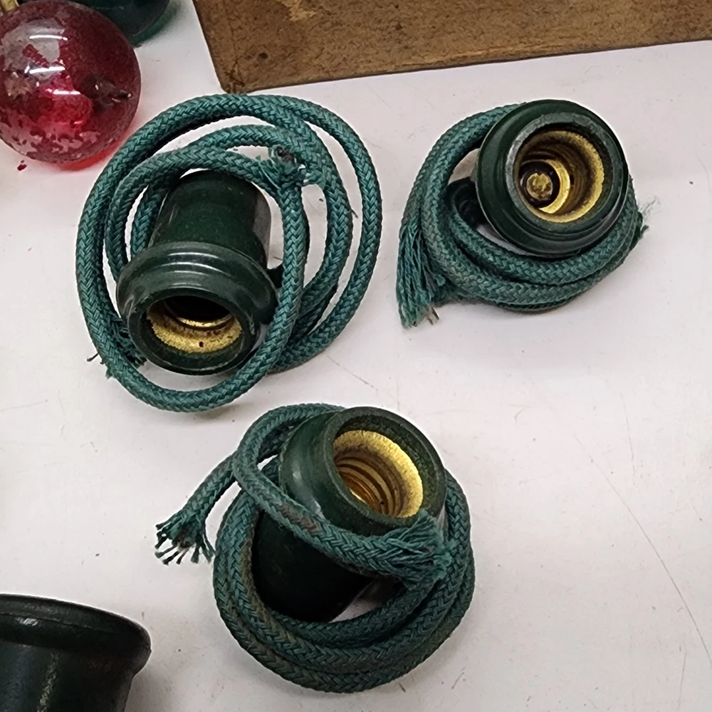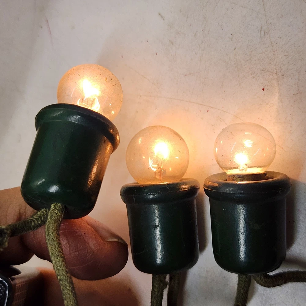 Welcome to Strack's Antiques Up for your consideration: .....PLEASE READ THE ENTIRE DESCRIPTION TO SEE WHAT YOU ARE BIDDING ON....THANK YOU...... This auction is for an assortment of Antique very early 1900s C6 CHRISTMAS LIGHTS, SOCKETS,PLUGS, & A FRANCO BATTERY. There is a combination of carbon exhaust tip light bulbs & little clear bulbs. ALL THESE BULBS WERE TESTED BEFORE WE LISTED THEM. We used a little battery to test them. The carbon exhaust tip bulbs include 20 that are working & 16 that are NOT working. There are also 9 little clear bulbs which 8 work & 1 that does NOT work. (bulbs in open box in main picture are the nonworking). ALSO INCLUDED are 23 green sockets with green cloth covered cords. They are individual sockets. Some are connected together and some are not. 3 look like they were never used. There is also the main large wooden screw in plug and a c6 screw in plug. We are not sure how these were actually powered back when these were made. WE ALSO INCLUDED A FRANCO BATTERY THAT WAS IN THE SAME BOX AS ALL THIS STUFF SHOWN. SEE PICTURE OF BATTERY IN PICTURES. WE BELIEVE THAT BATTERY WAS THE POWER SOURCE FOR THE SMALLER ROUND CARBON EXHAUST TIP LIGHTS THAT CAME IN THE SMALL SQUARE BOX. What you see in the pictures is what you are getting. Thats how we bought these. Not sure if there is anything missing. There is also an empty cardboard box that says XMAS TREE LAMPS 6 VOLTS EMPIRE MINIATURE BASE. BOX HAS TAPED REPAIRS. Condidering the nature of all these items, they are being SOLD AS-IS. PLEASE LOOK AT THE PICTURES AS THEY ARE PART OF THE DESCRIPTION AND ALSO TO SEE WHAT YOU ARE BIDDING ON. CONDITIONS LISTED BELOW. Approx. Measurements ( Length x Width x Height ) = 12x12x12 Approx. Weight = 4lbs BID WITH CONFIDENCE -- WE HAVE BEEN SELLING SINCE 1999 Good AS-IS Condition.... AGE RELATED WEAR... Paint/color on bulbs is flaking on some, crazing on others. Best thing is...... See ALL THE Pictures & ALSO READ ENTIRE DESCRIPTION ABOVE. Shipping Terms for This Item: We offer combined shipping to domestic buyers who purchase multiple items. NOTE: No combined shipping for international buyers. If you would like for us to combine shipping for your order, please contact us for an invoice. Do not pay until you receive a combined invoice from us. Please note: Buyer will have to directly sign when item/items sells for $200 or more when delivered - per insurance policy rules.
