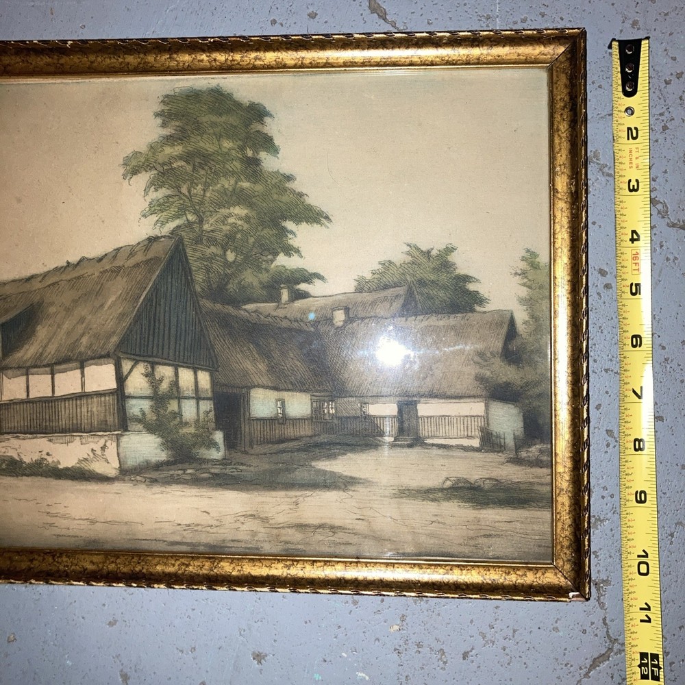 The product is an antique colored sketch depicting houses, featured in a framed original drawing. The piece is not signed, adding to its mystery and allure as an authentic and timeless artwork. This unique and vintage piece would make a charming addition to any art collection, adding a touch of history and character to any living space.