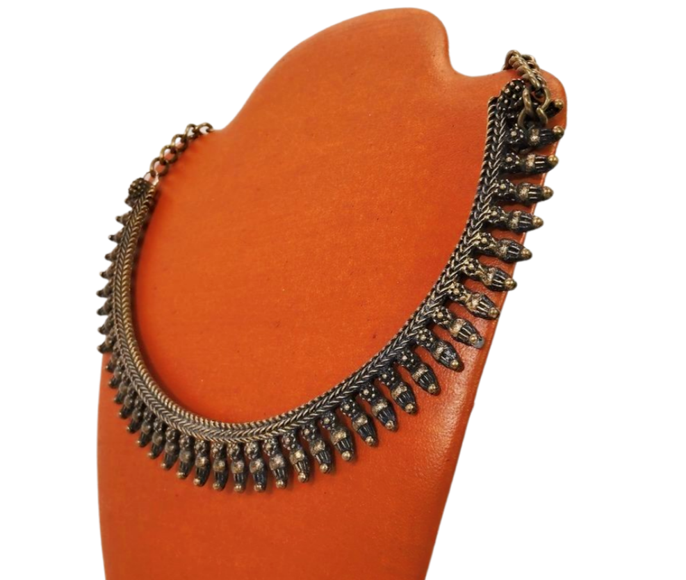 Antique Elegance 16 Inch Oxidized Gold Tribal Choker Necklace with 3 Inch Extender JN1462